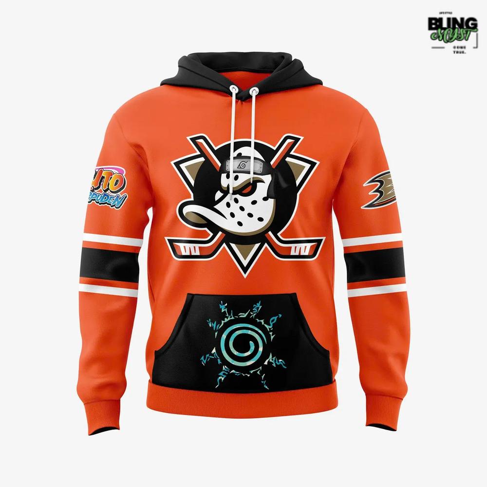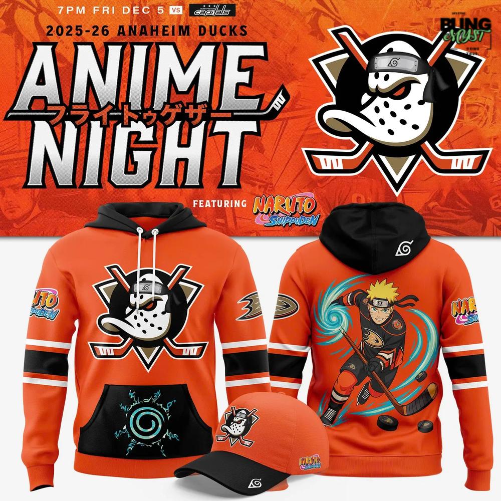 Bold Crossover Vibes – Anaheim Ducks Naruto Anime Night 2025-26 Hoodie πŸŒ€πŸ¦†πŸ”₯