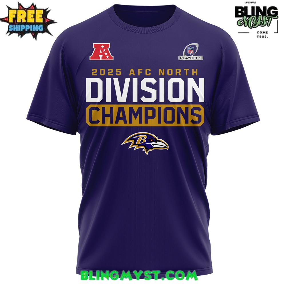 The Baltimore Ravens 2025 AFC North Division Champions Profestional T-Shirt delivers championship pride in a bold, game-ready design that celebrates a dominant division run.