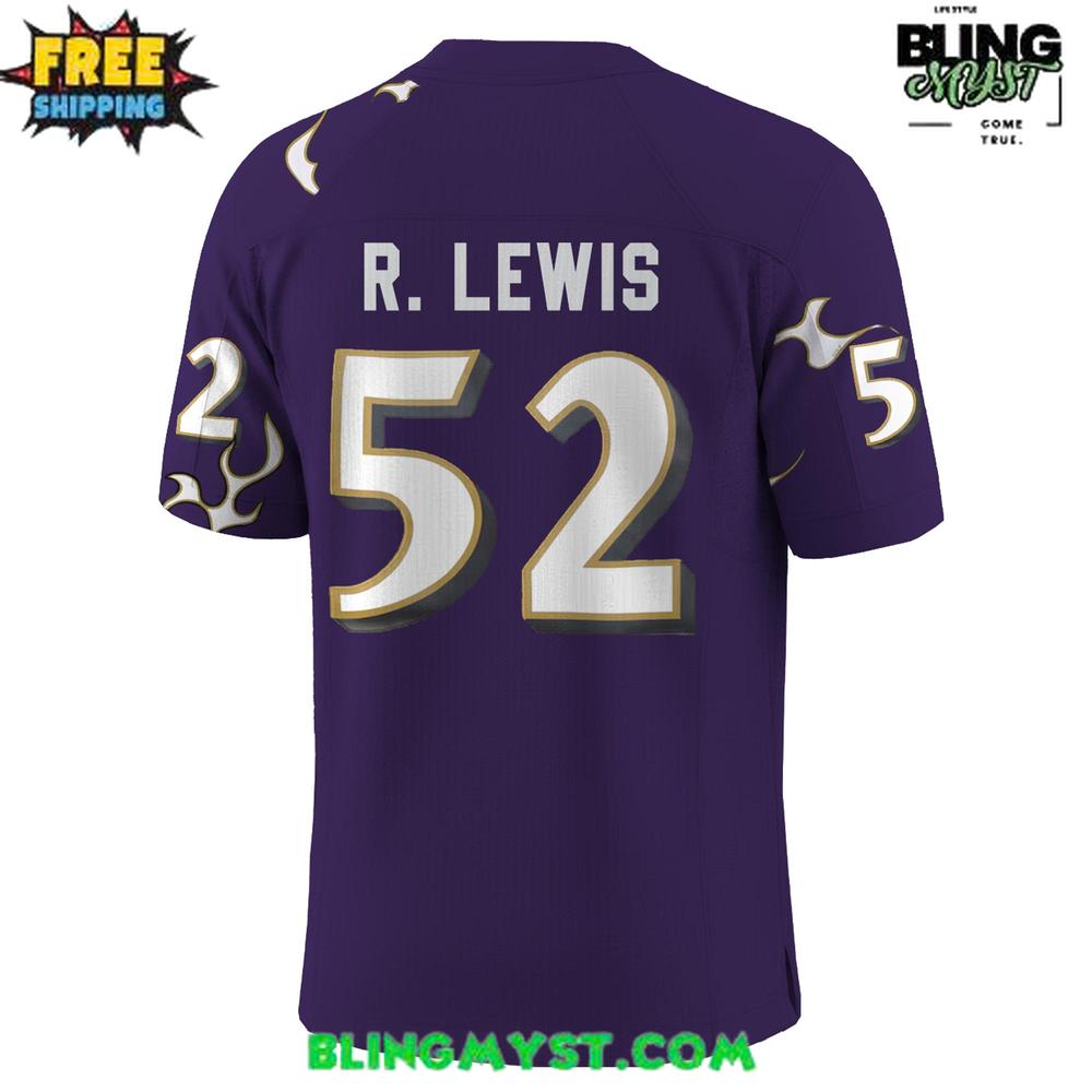 Back nameplate reads R. LEWIS, honoring one of the most dominant linebackers in NFL history.