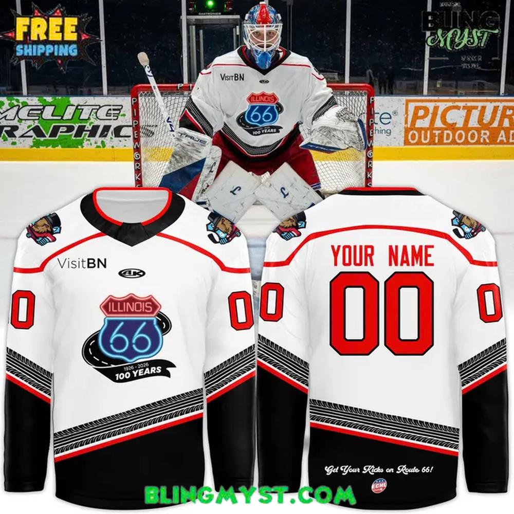 The Bloomington Bison Honoring the Centennial of Route 66 Limited Hockey Jersey is a themed design that succeeds because it treats nostalgia as graphic discipline, not kitsch. Rather than drowning the jersey in retro clutter, it builds a clear visual narrative around one of America’s most mythic symbols of travel: Route 66β€”a shorthand for freedom, movement, and the romance of the open road. The result feels both commemorative and surprisingly modern.
