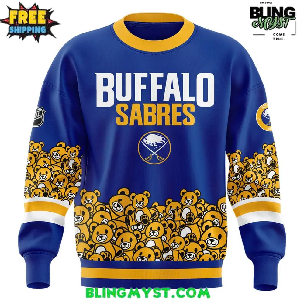 The Buffalo Sabres Teddy Bear Toos Special Sweatshirt brings together heartwarming hockey tradition and bold fan style in a piece that feels just as good as it looks.