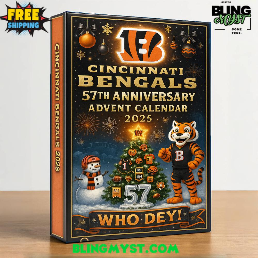 The Cincinnati Bengals 57th Anniversary Christmas Advent Calendar 2025 is more than a countdown — it’s a celebration of nearly six decades of grit, pride, and jungle power. A must-have holiday centerpiece for every “WHO DEY” fan! 🧡🐅🎄