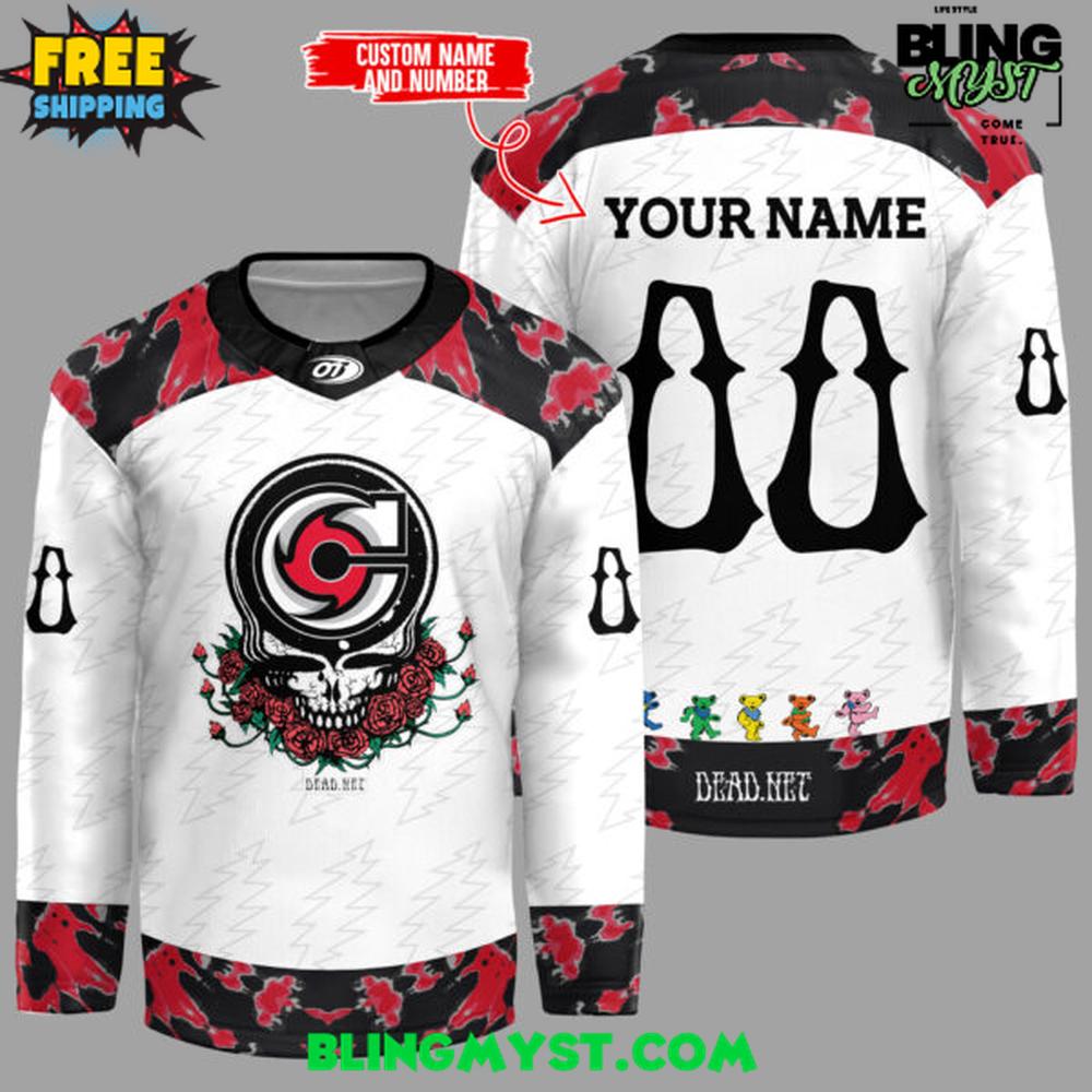 The Cincinnati Cyclones Grateful Dead Night 2026 Hoodie as arena streetwear with a strong psychedelic-rock edge. The crisp ice-white base keeps the look clean and modern, while the faint tonal patterning adds subtle texture so it doesnβt feel flat. What really defines the silhouette is the bold black-and-red camo across the shoulders, cuffs, and hemβthis creates a sharp frame that feels tough, aggressive, and game-ready, more like a hockey jersey remix than a standard hoodie.