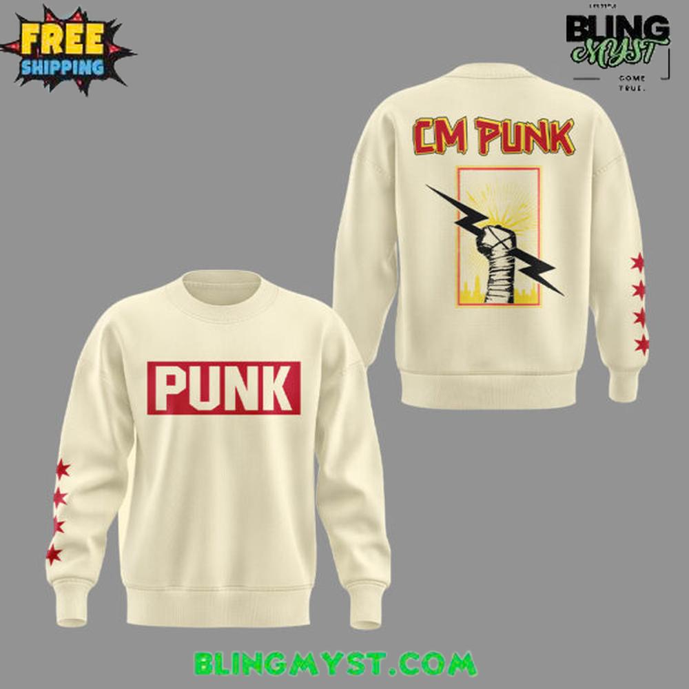 The back features CM Punk’s lightning fist graphic, inspired by his trademark energy and fearless charisma.