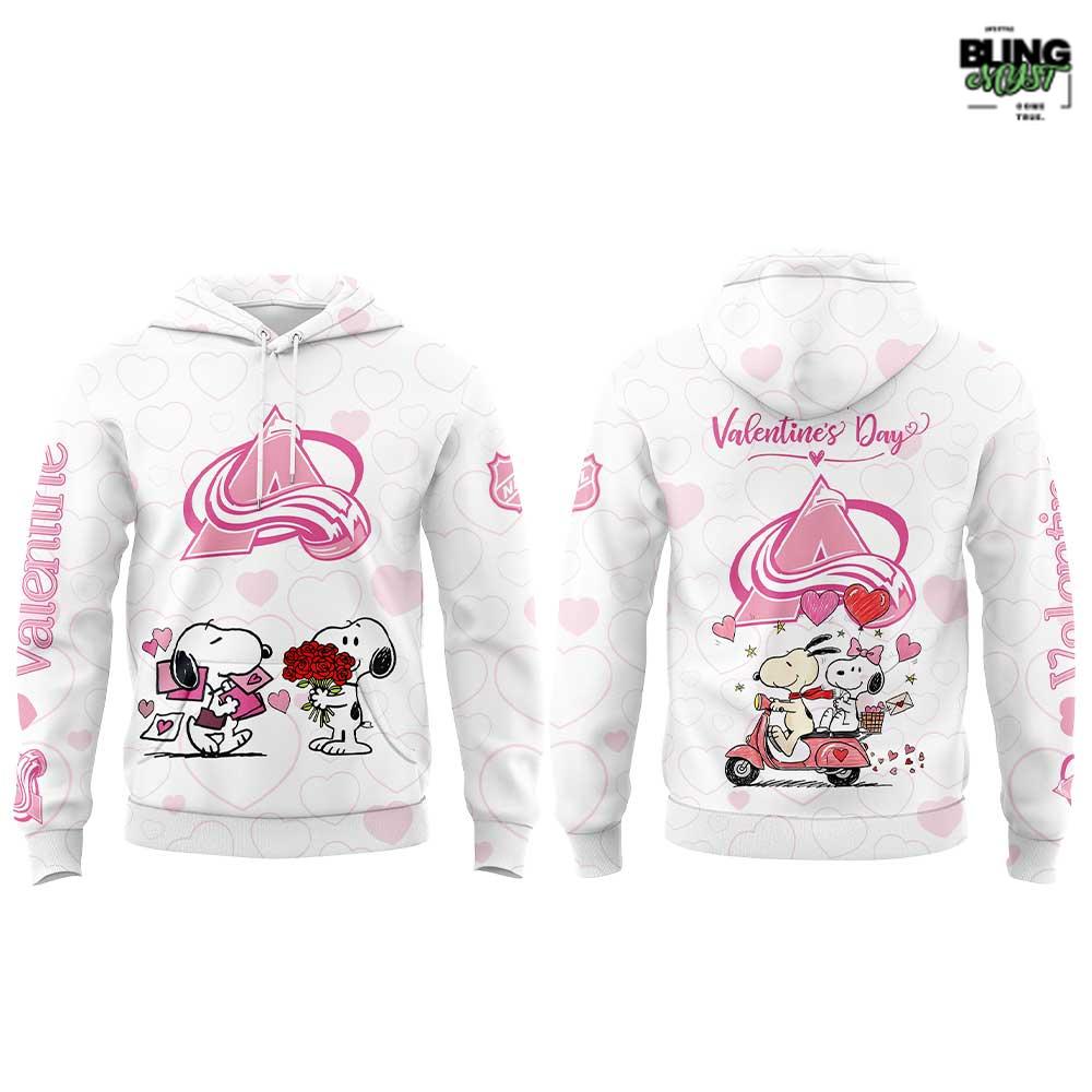 Style & Design of Colorado Avalanche Peanuts Happy Valentine Day 2026 Hoodie