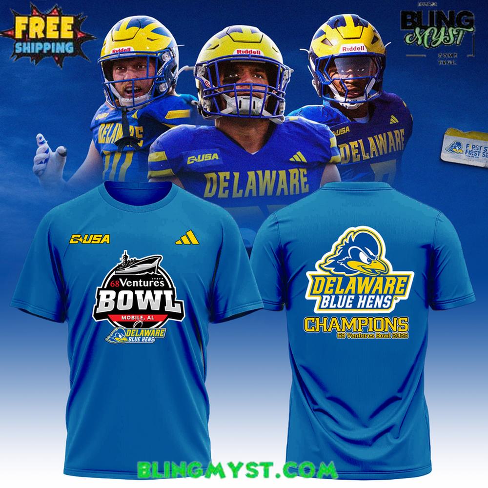 The Delaware Blue Hens 68 Ventures Bowl Champions Special T-Shirt captures a title-winning season in a clean, confident design made for everyday fan pride.