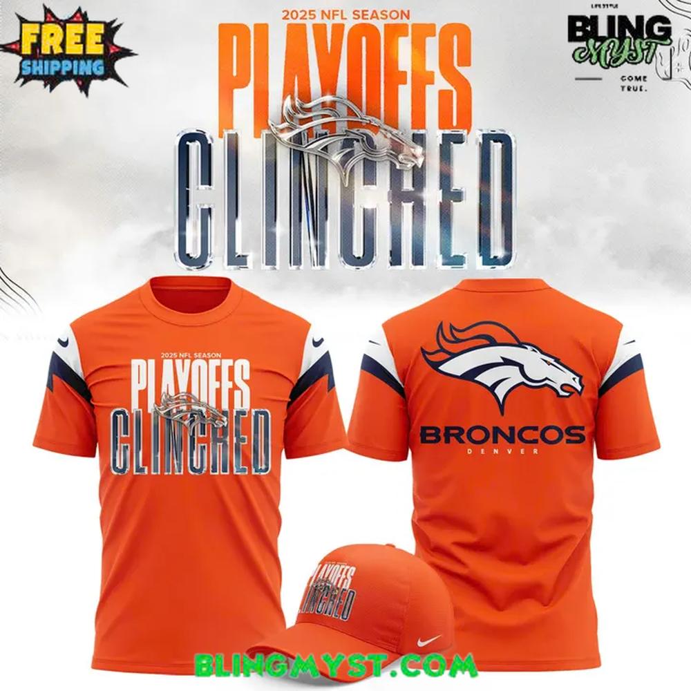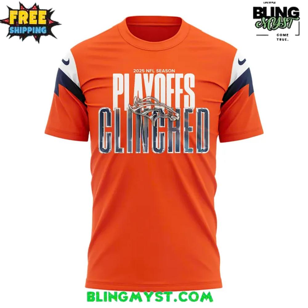 The Denver Broncos 2025 NFL Season Playoffs Clinched T-Shirt captures a milestone moment with bold energy and unmistakable team pride, designed for fans who live for playoff football.