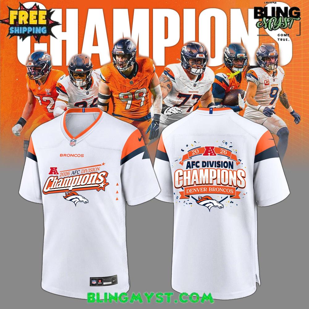 Design-wise, the jersey emphasizes clarity and symmetry. The front-and-back prints create a full 360-degree celebratory effect, ensuring visibility from every angle. The back graphicβ€”AFC Division Champions / Denver Broncosβ€”feels like a victory poster, reinforcing its collectible nature. The athletic cut keeps the silhouette structured and wearable beyond game day. Overall, this piece is ideal for fans who want team pride, championship significance, and modern sport styling combined into one confident, high-impact jersey.