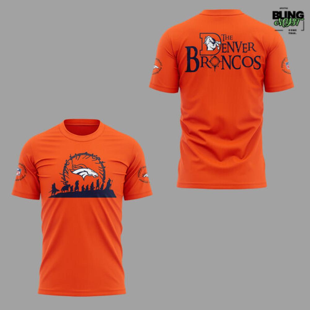 The Denver Broncos x Lord Of The Rings T-Shirt is a crossover concept that aims for myth-meets-modern fandomโ€”and when it works, it feels surprisingly cohesive. The first thing you notice is the bold orange base, unmistakably Broncos, acting as a loud, energetic canvas that immediately signals team identity. But the design doesnโ€™t stop at sports color; it borrows from fantasyโ€™s visual language to create something closer to wearable storytelling than simple merchandise.