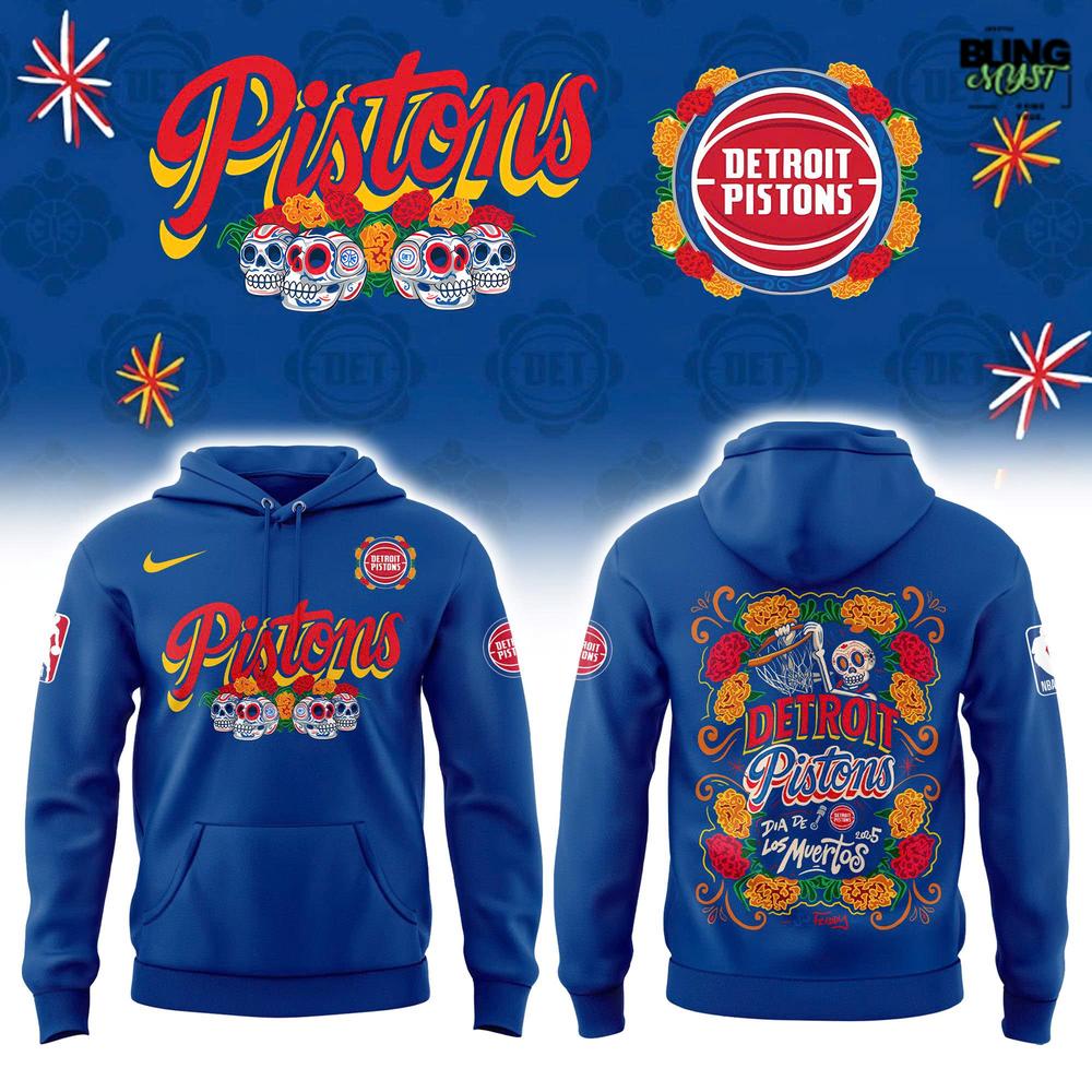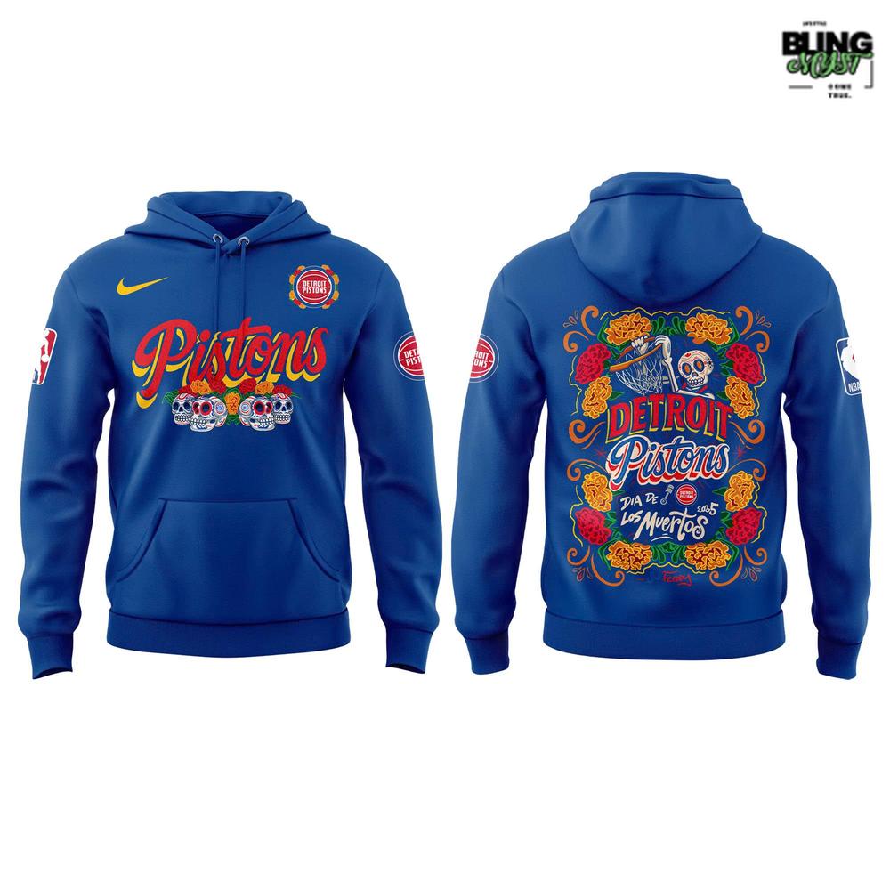 Celebrate culture, color, and court pride with the Detroit Pistons Día De Los Muertos 2025 Hoodie, where basketball meets tradition in a stunning fusion of design.