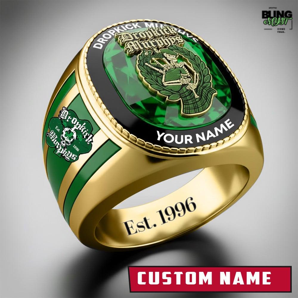 • The Dropkick Murphys Diamond Personalized Engraved Rings channel raw energy and working-class pride with a bold design inspired by Celtic punk heritage.