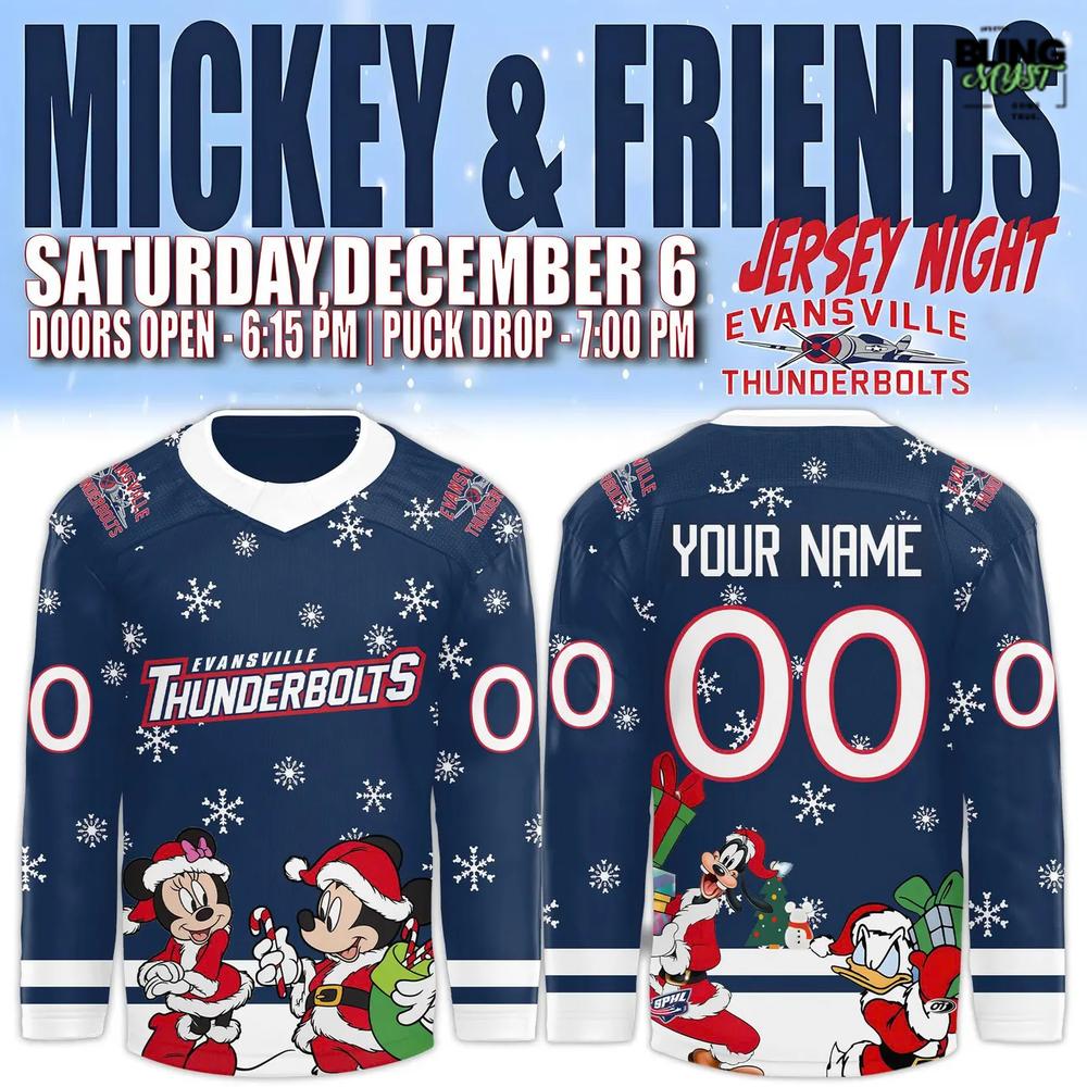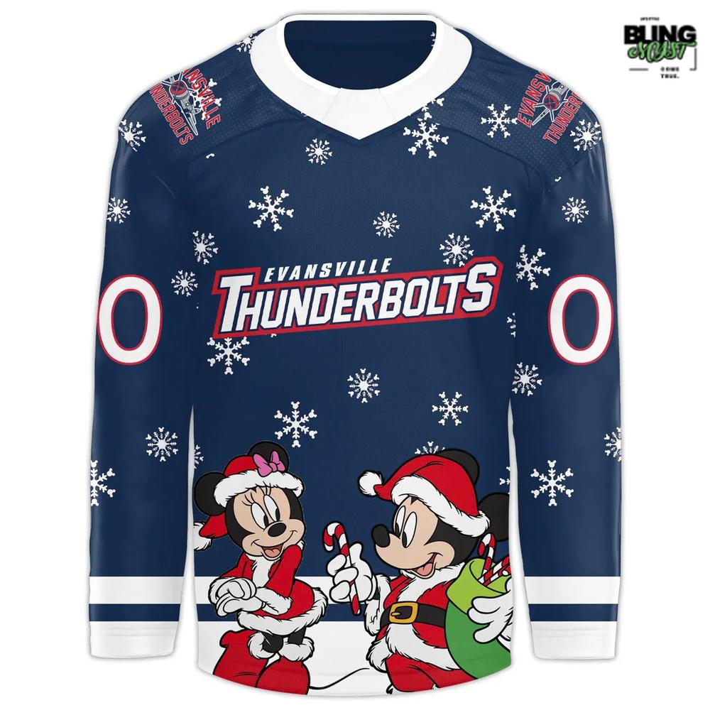 Festive Spirit on the Ice โ Evansville Thunderbolts Mickey Merry Christmas 2025 Hockey Jersey โ๏ธ๐๐