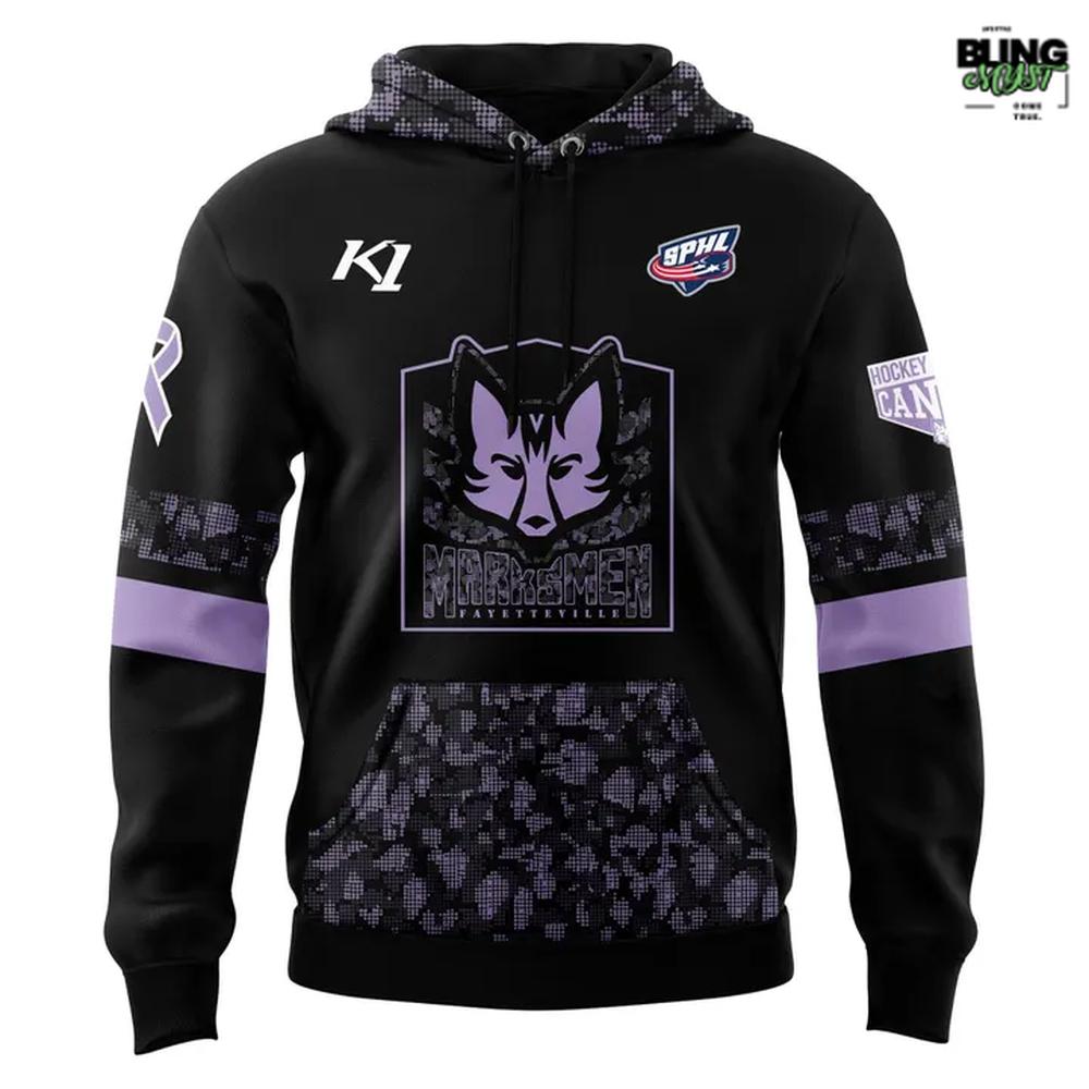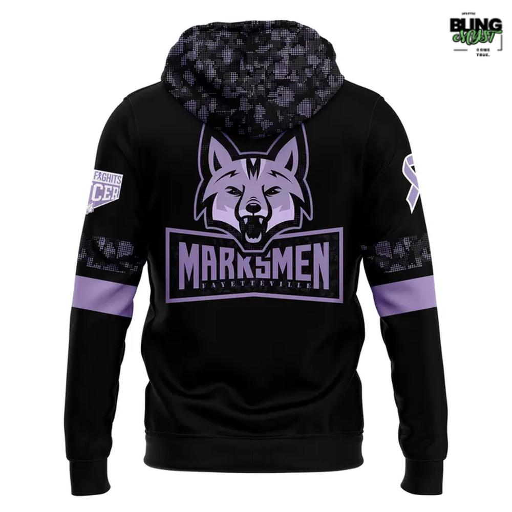 Support the Fight in Comfort – Fayetteville Marksmen Hockey Fights Cancer Limited Hoodie 💜🏒🦊