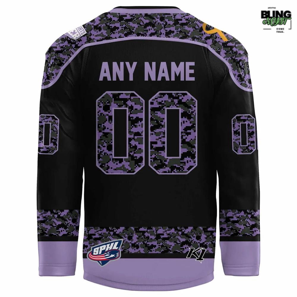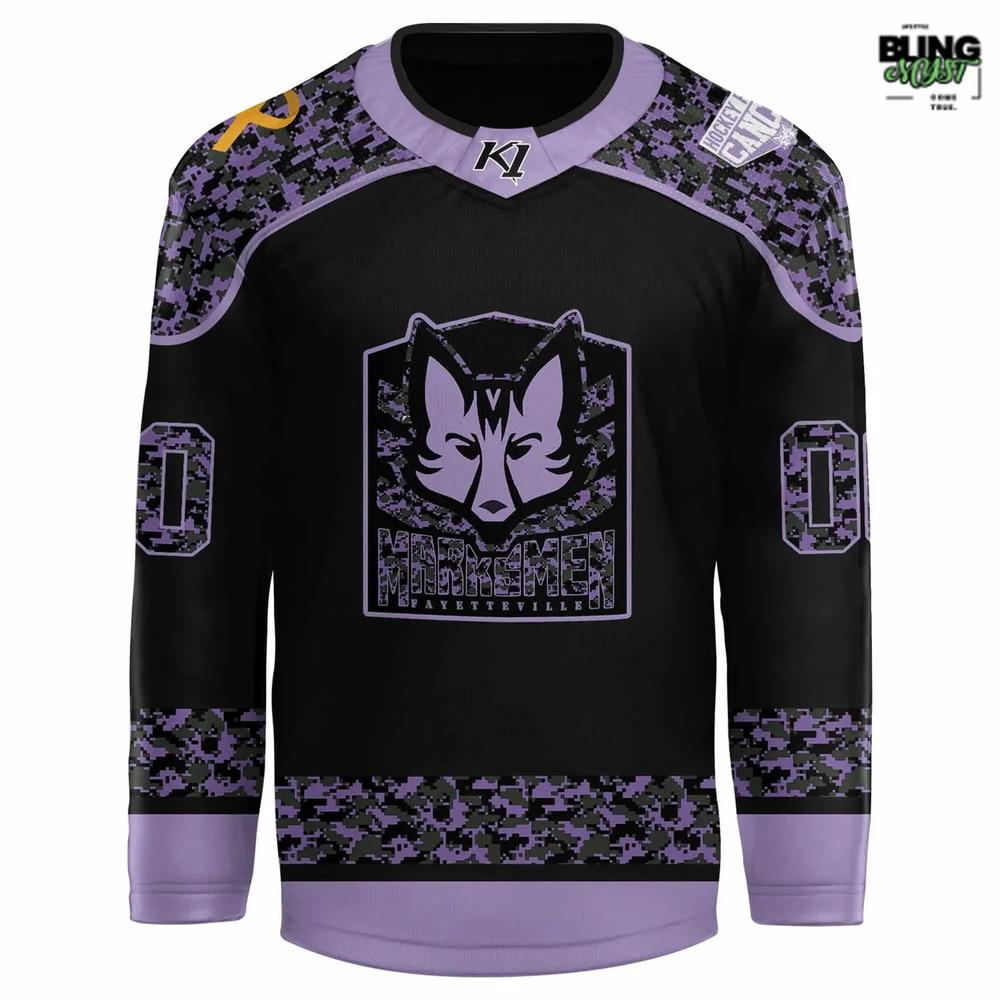 Honor, Strength & Support β€” Fayetteville Marksmen Hockey Fights Cancer Night 2025 Hockey Jersey πŸŽ—οΈπŸ’πŸ’œ