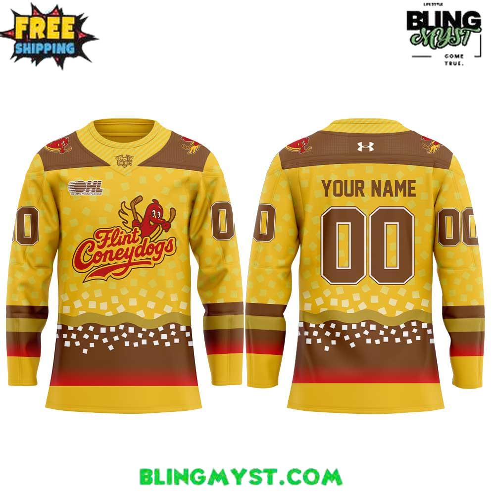 The Flint Firebirds Flint Coneydogs 2026 Hockey Jersey is the kind of concept jersey that understands the power of local mythology—not just representing a team, but celebrating a city’s flavor with unapologetic charm. It takes the familiar hockey form and transforms it into a piece of regional storytelling, where food culture becomes identity. The moment you see it, you understand: this isn’t meant to be subtle. It’s meant to be fun, memorable, and proudly Flint.