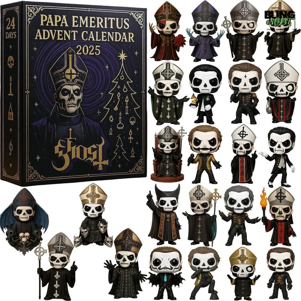 The Ghost Papa Emeritus Limited Edition Advent Calendar 2025 delivers a striking blend of gothic artistry and holiday anticipation, featuring bold, stylized mini collectible figures inspired by the iconic Papa Emeritus personas.