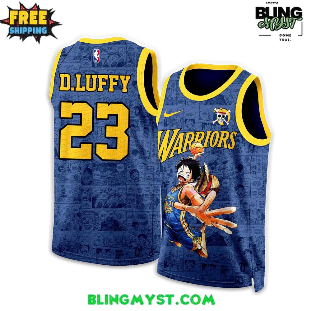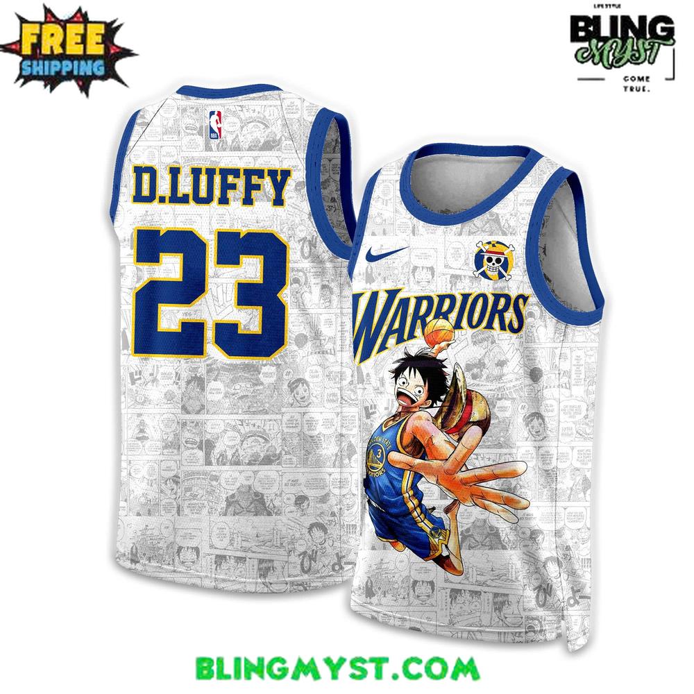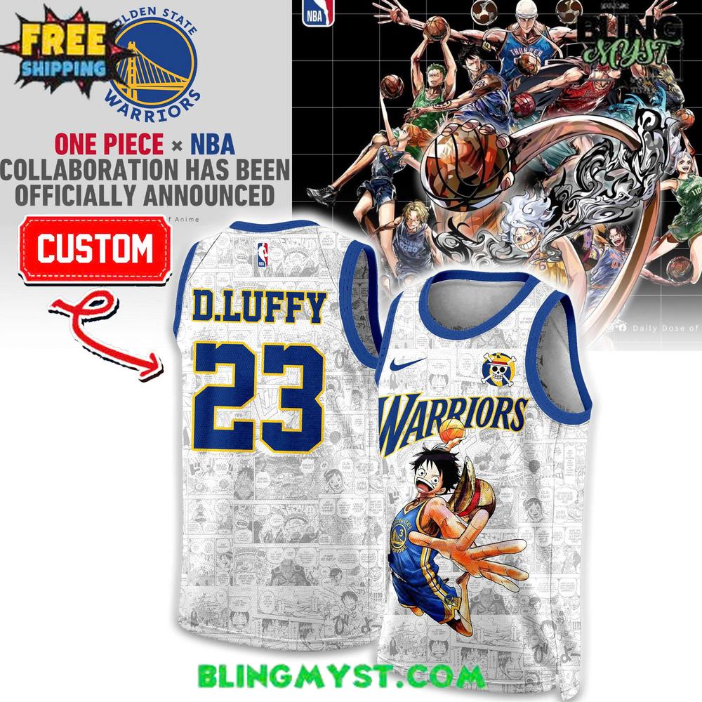 The Golden State Warriors x One Piece Limited Edition NBA Basketball Jersey blends high-energy hoops style with bold anime flair.