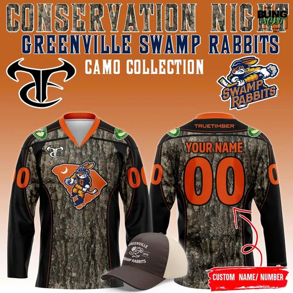 The Greenville Swamp Rabbits 2026 Conservation Night Edition Hockey Jersey is a rare example of event merch that feels both purpose-driven and visually fearless. At first glance, the jersey leans hard into its theme: the all-over camo woodland texture creates an immersive, outdoors-first identity, instantly separating it from standard rink aesthetics. Yet itβs not camouflage for hidingβitβs camouflage as statement, used to frame the nightβs message and make the jersey feel like a wearable poster for conservation.
