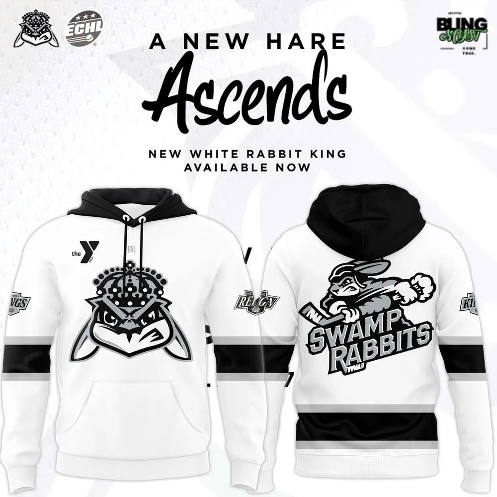 The Greenville Swamp Rabbits Ascends 2025 New White Hoodie introduces a striking new chapter in team identity with a clean, monochrome design that feels sharp, powerful, and modern.