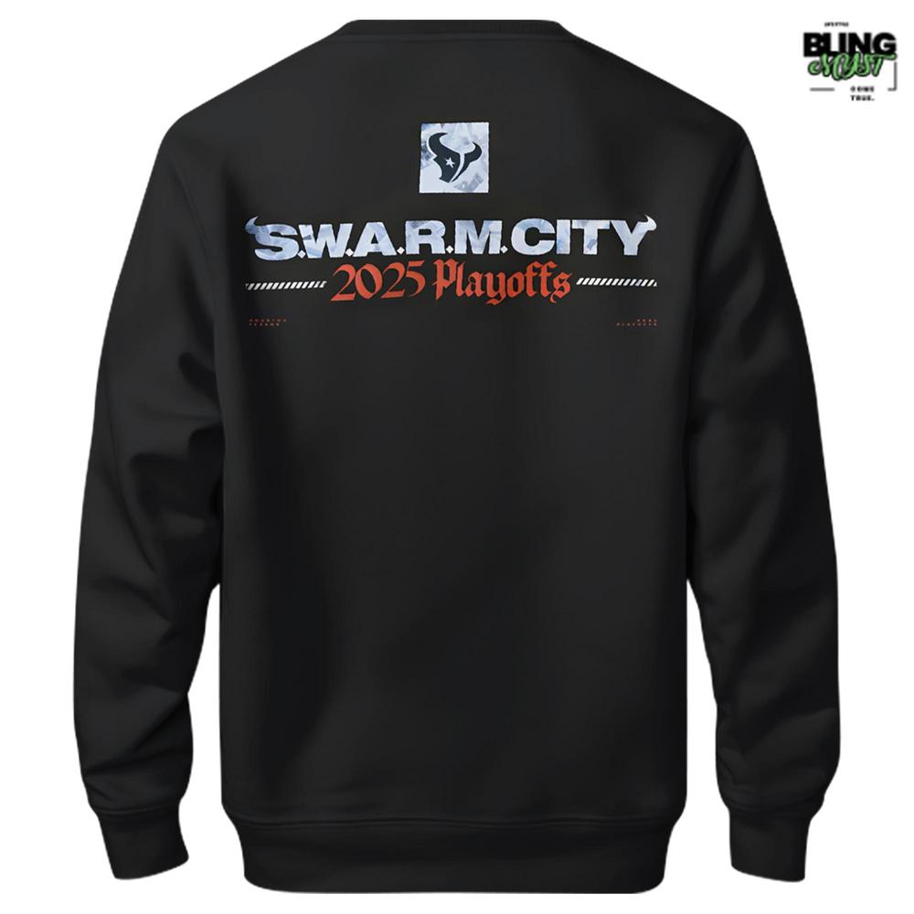 Ultimately, the Houston Texans Swarm City 2025 Playoffs Limited Edition Hoodie is not merely apparel—it is a badge of belief. Quiet on the front, undeniable on the back, it stands as memory made wearable, built for fans who carry the postseason with them long after it ends.