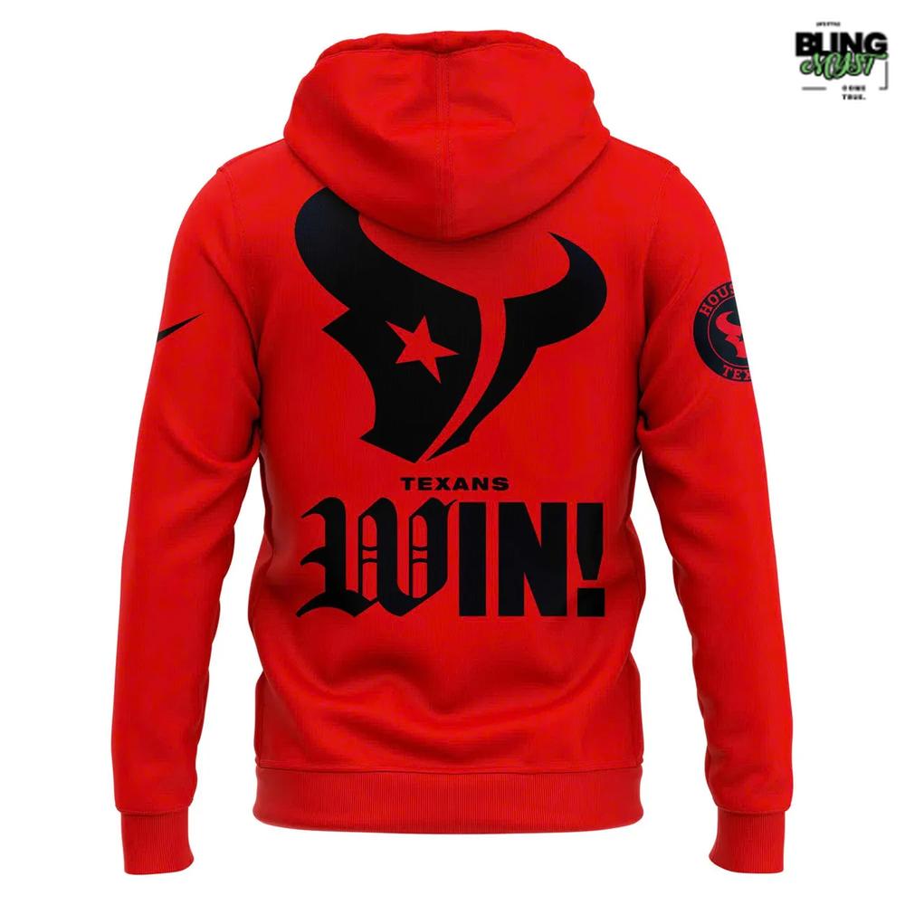 - The back showcases a large Texans logo above the triumphant βWIN!β graphic, giving the hoodie a dynamic 360Β° design.