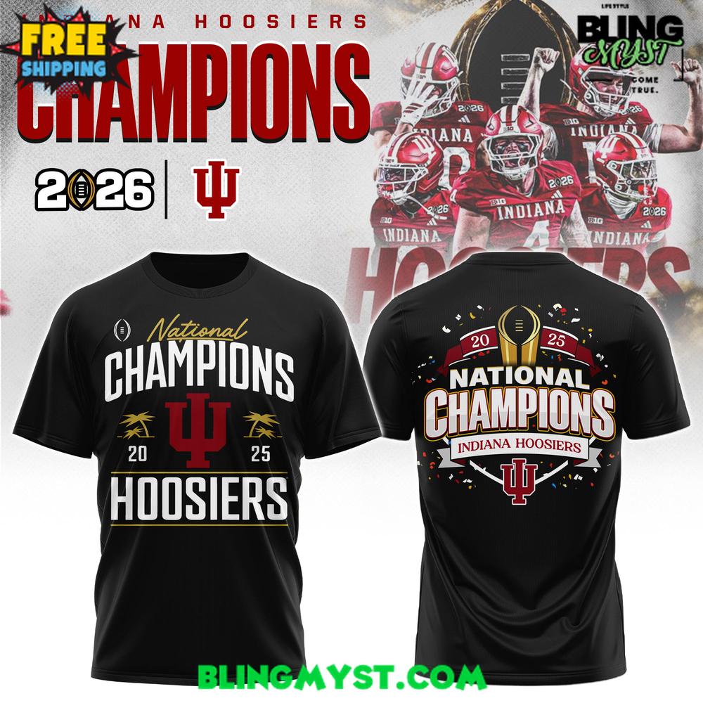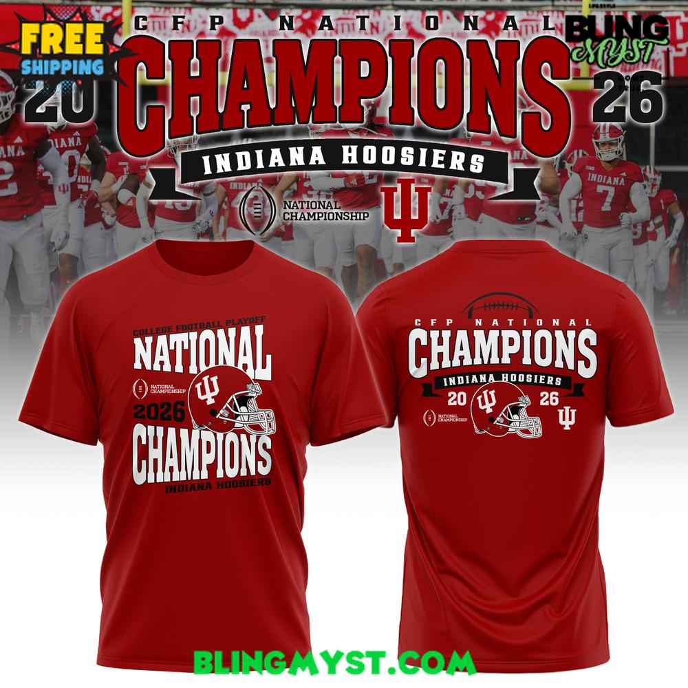 The Indiana Hoosiers CFP National Champions 2025-26 Victory T-Shirt is built to function as instant historyโa wearable artifact that freezes a championship moment in bold, highly readable form. The first impact comes from the unmistakable Hoosiers crimson, a color that carries emotional weight on its own. Itโs not just team branding; itโs identity, and the shirt uses that heritage tone as a strong canvas for the victory message.