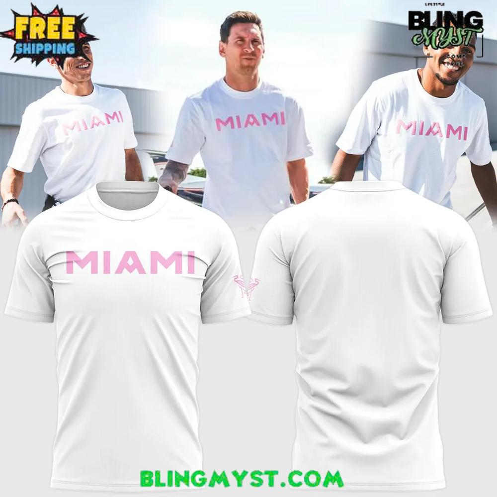 The Inter Miami Pink Logo 2026 New T-shirt reads as a clean street-luxe essential with a sporty heartbeat. The crisp white base creates a fresh, bright canvas, while the pink “MIAMI” wordmark delivers that instantly recognizable club identity in a softer, more fashion-forward way. The overall design feels minimalist, but not plain—because the color contrast is intentional and the placement is confident. It’s the kind of tee that looks effortless yet styled, perfect for fans who prefer subtle branding over loud graphics.
