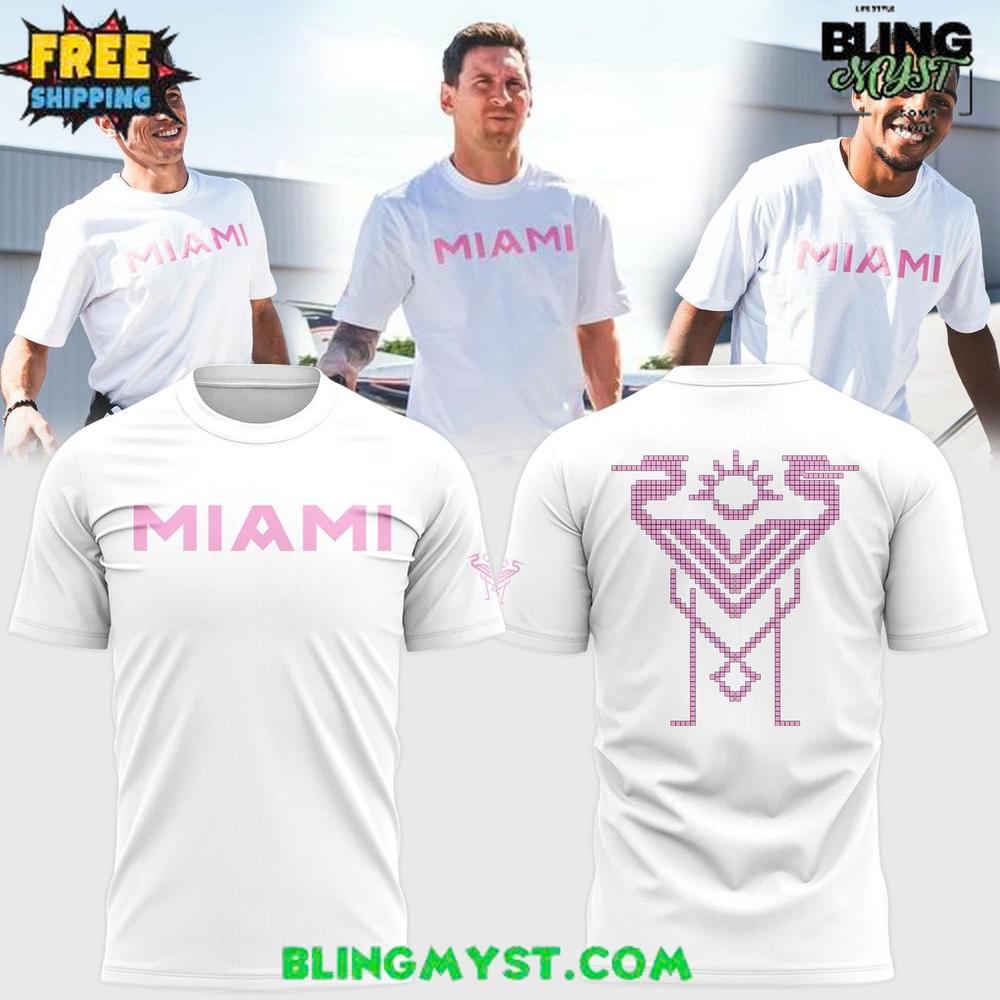 At first glance, the clean white base creates a sense of minimalist elegance, allowing the soft pink “MIAMI” logo to stand out with quiet confidence. This color choice is intentional and symbolic: pink has become a signature identity of Inter Miami, representing innovation, boldness, and a break from tradition. The typography is simple yet assertive, giving the shirt a contemporary streetwear aesthetic rather than a loud sports jersey look.