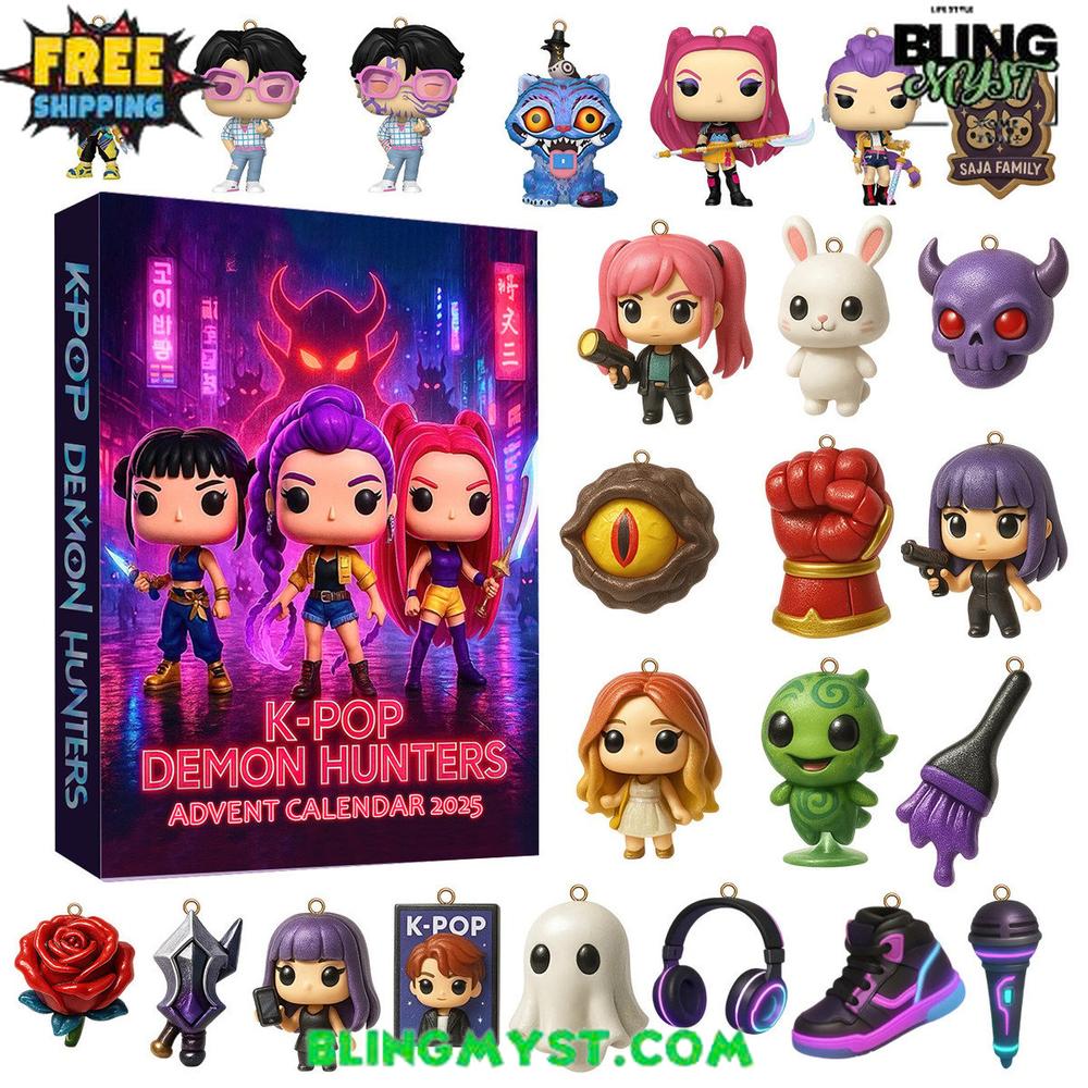 Each of the 25 days reveals a unique collectible — from chibi-style figures of the Demon Hunter squad to mystical creatures, weapons, and neon-lit accessories inspired by the hit animated world.