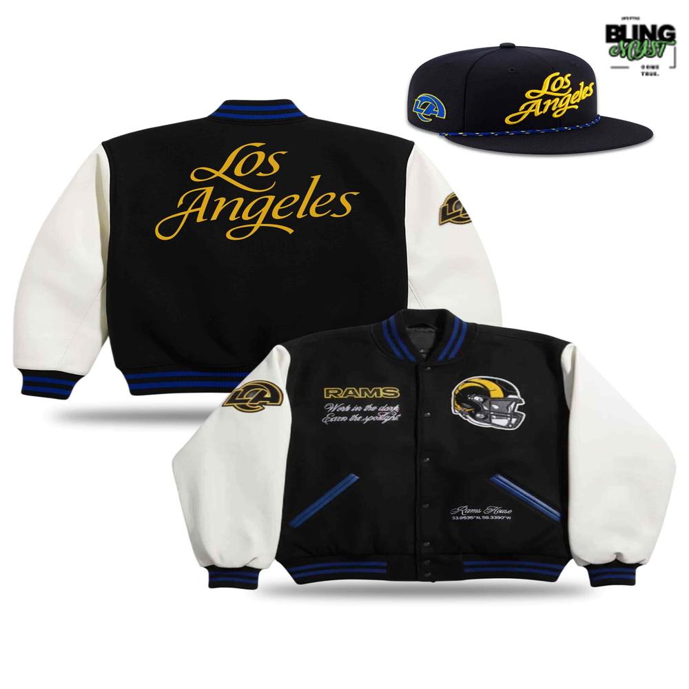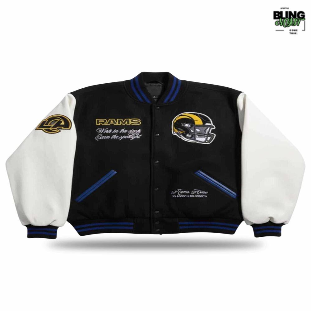 The Kyren Williams Los Angeles Rams Rivalries 2025 Varsity Jacket delivers that unmistakable varsity-meets-game-day energy with a bold, modern twist.