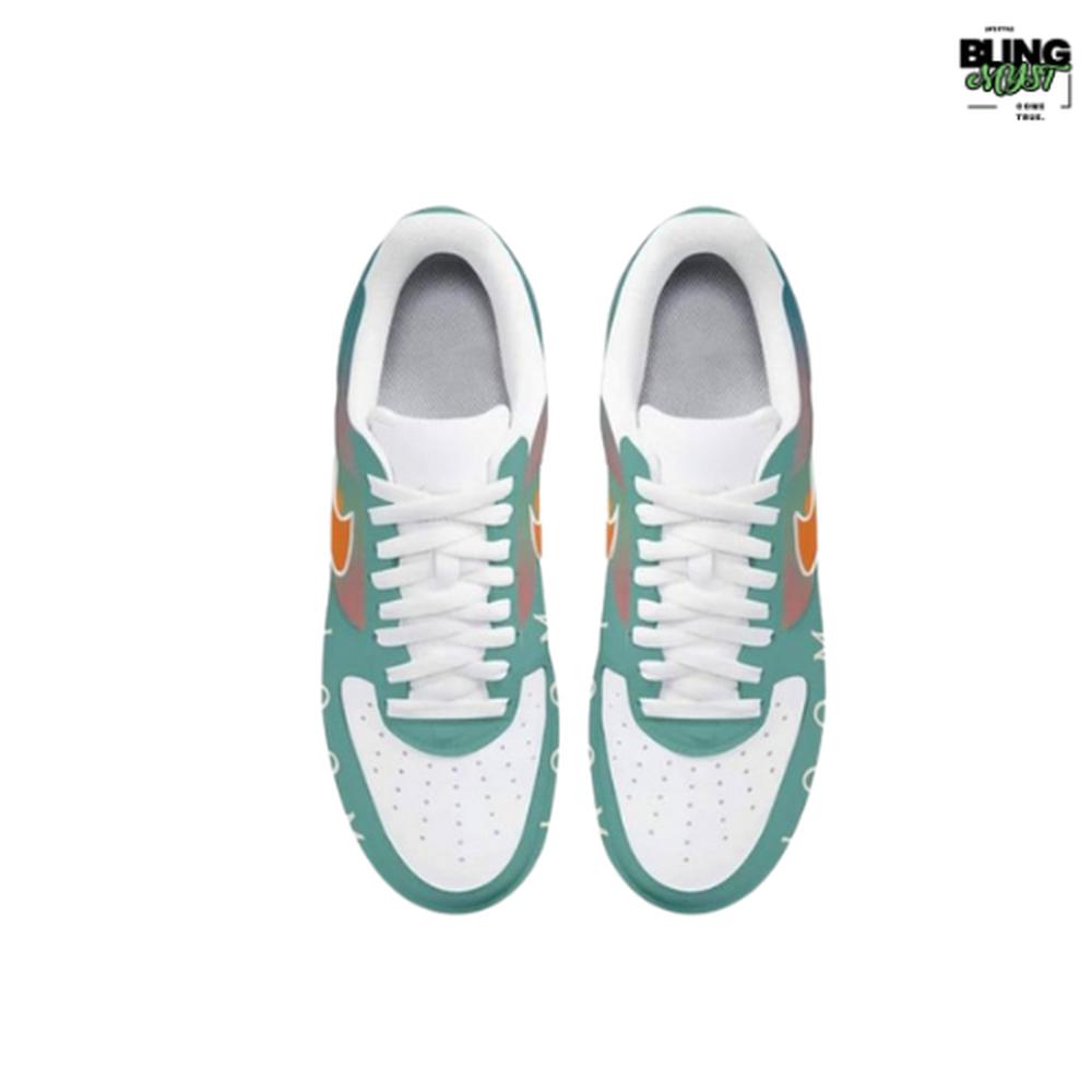 - Built on a crisp Air Force 1βstyle sneaker, the design features a soft gradient palette of teal, coral, yellow, and sunset pinkβmirroring the dreamy, atmospheric tones associated with Imagine Dragonsβ aesthetic.