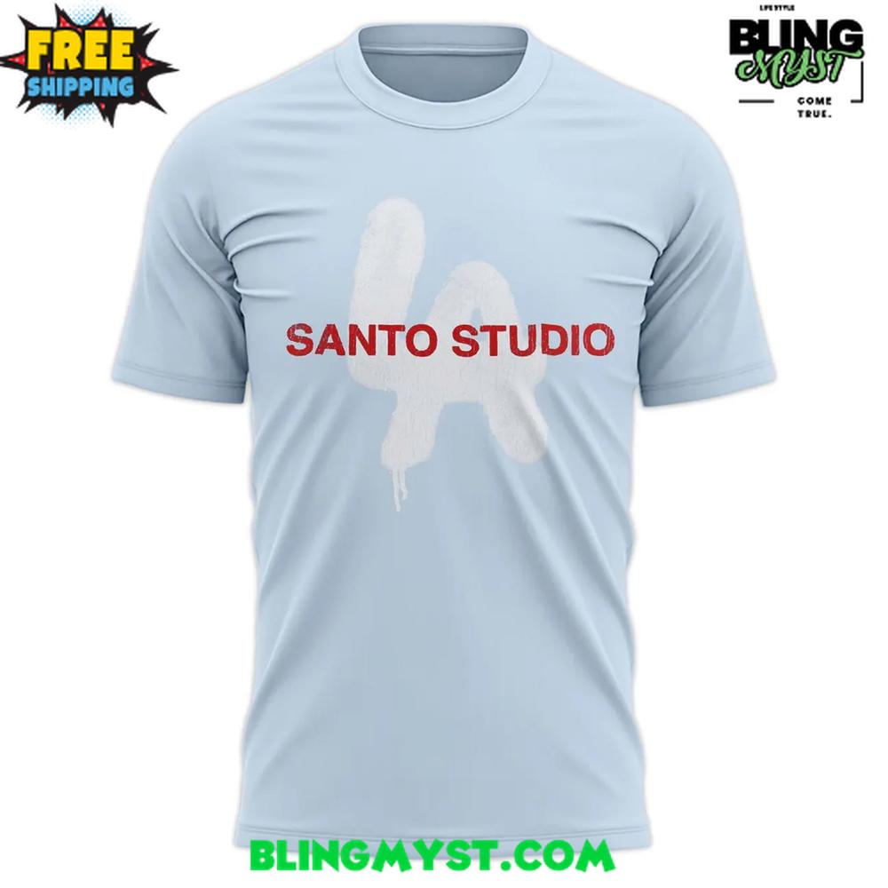 • The Los Angeles Dodgers Santo Studio Special T-Shirt blends iconic baseball heritage with modern streetwear artistry.