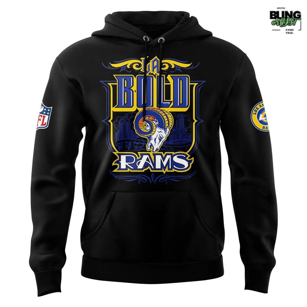 The Los Angeles Rams Bold Rams Mister Cartoon Special Edition Hoodie brings tattoo-inspired artwork and bold team identity together in a striking, high-impact design.