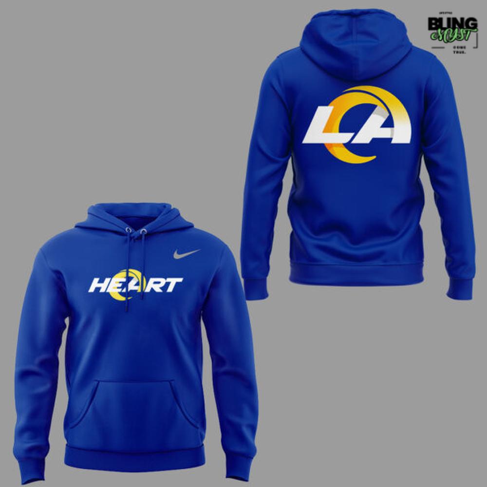 The Los Angeles Rams Heart Logo 2026 Hoodie is a smart piece of modern fanwear because it communicates identity through simplicity, not noise. The bold royal blue base is instantly Rams-coded—clean, saturated, and athletic—while staying versatile enough to function as an everyday hoodie. It’s the kind of color that reads premium when the fabric has weight, and it makes the graphics pop without needing extra embellishment.