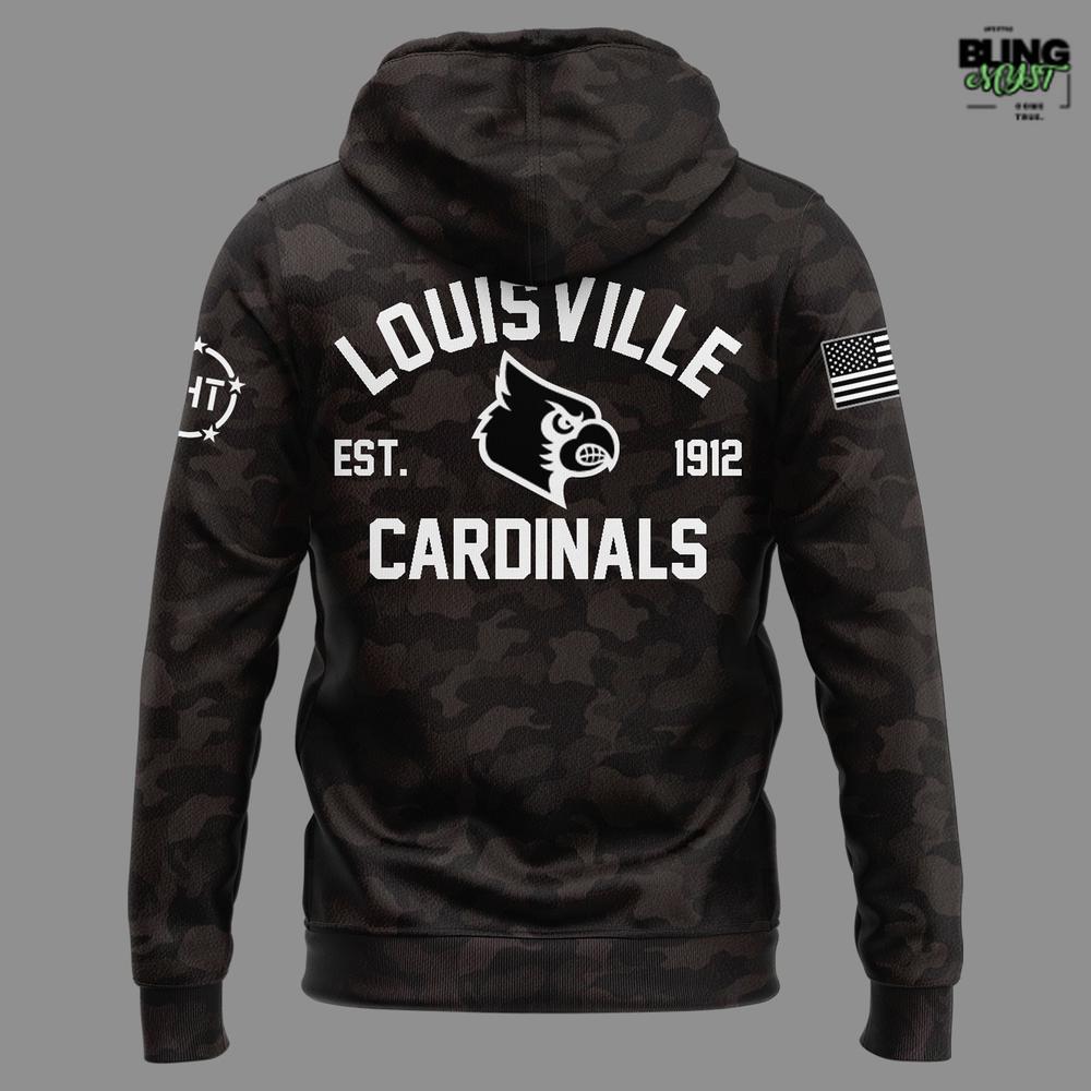 The Louisville Cardinals Military Appreciation Night Hoodie 2025 blends team pride with a bold, tactical-inspired aesthetic.