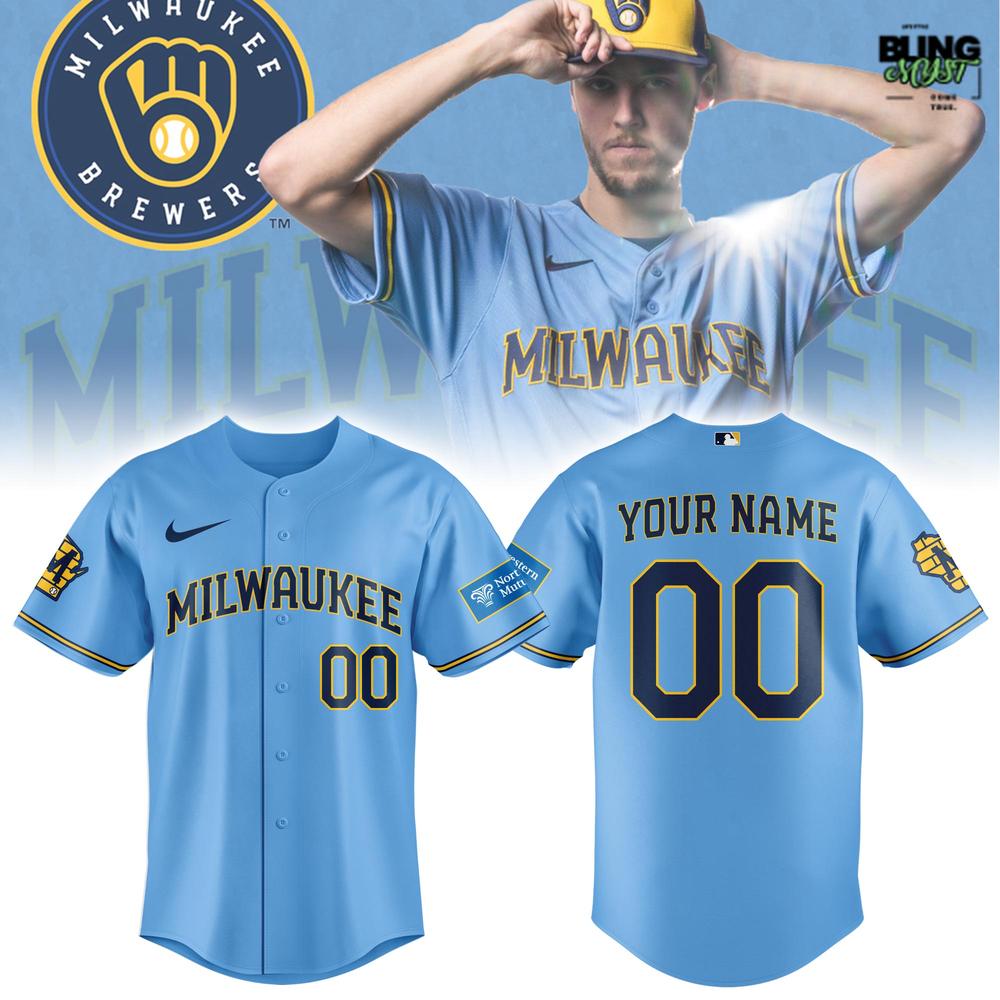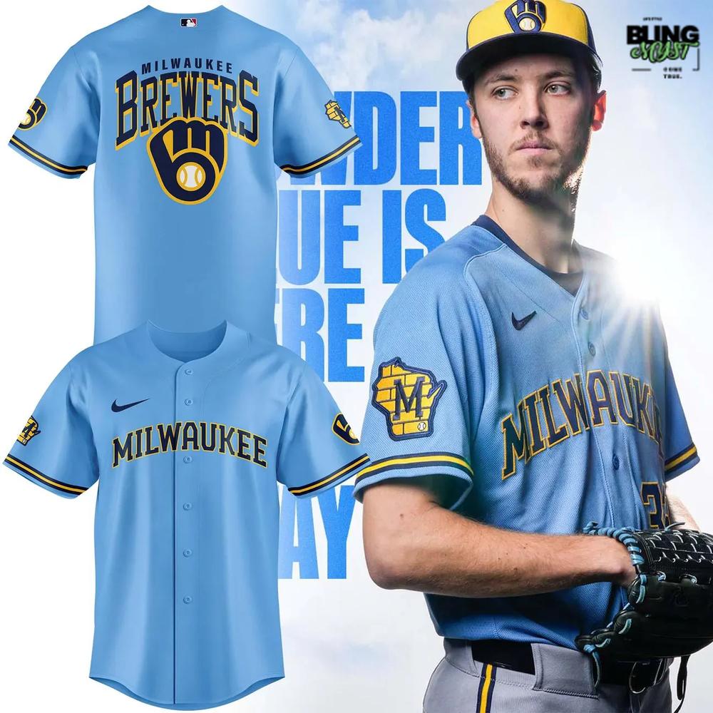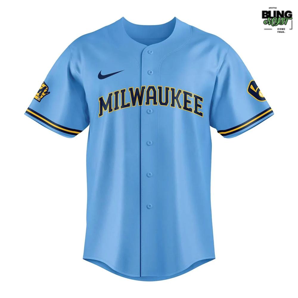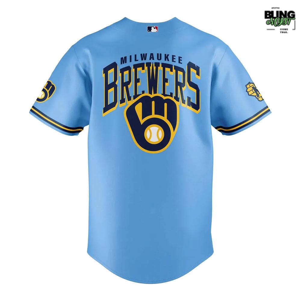The Milwaukee Brewers Powder Blue Uniforms NBA Baseball Jersey delivers a clean, nostalgic look inspired by classic baseball aesthetics and modern performance-ready teamwear design.
