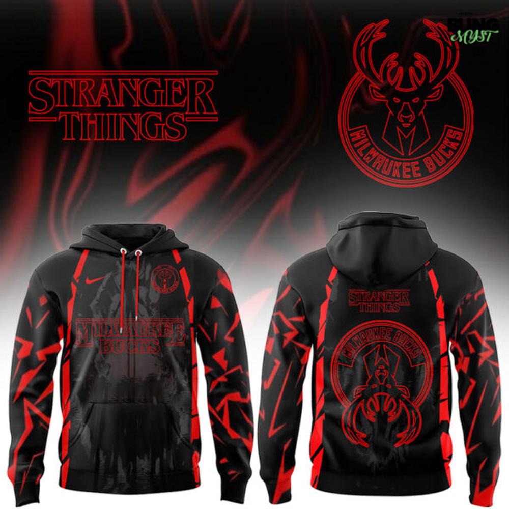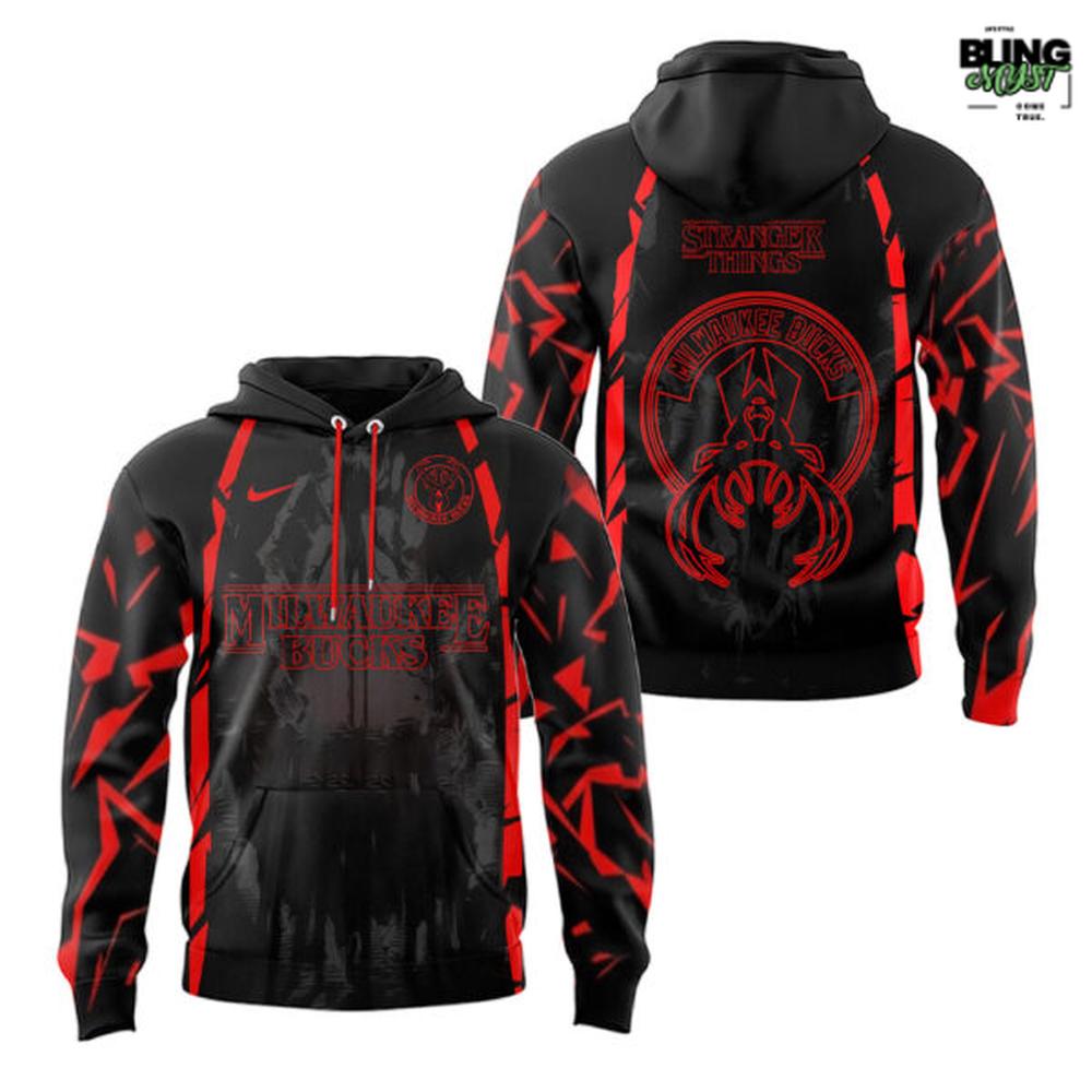 The Milwaukee Bucks Stranger Things Upside Down Hoodie fuses dark, cinematic energy with bold basketball identity for a look that instantly stands out.