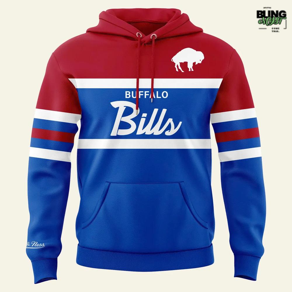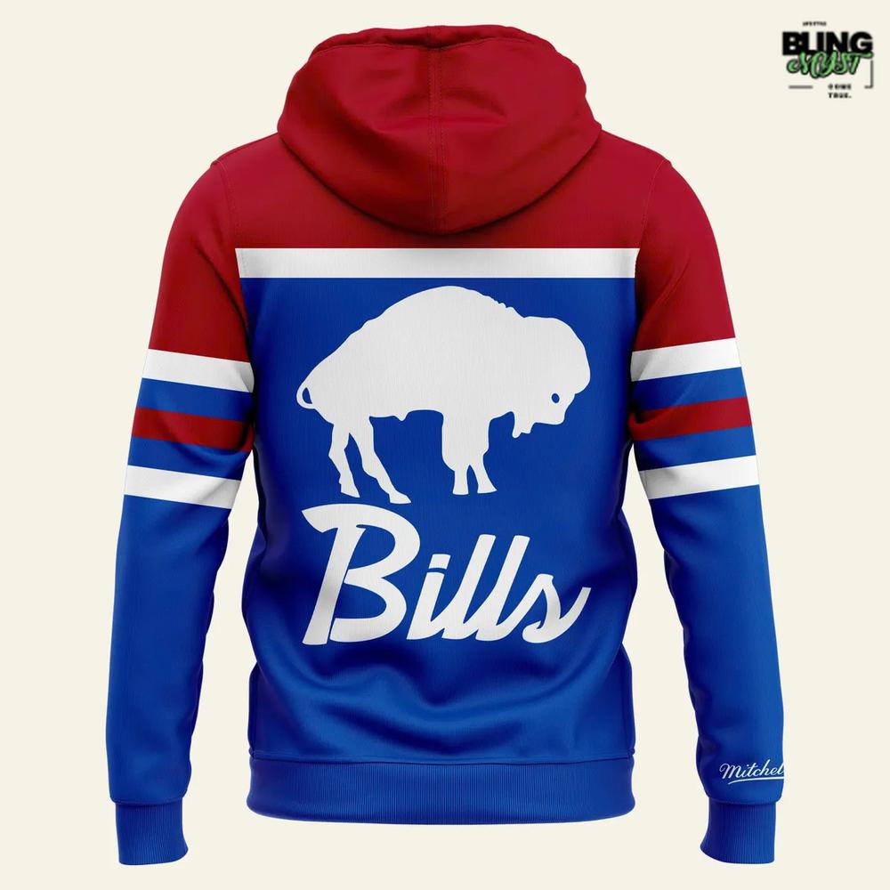 The Mitchell & Ness Buffalo Bills Throwback Head Coach Special Hoodie delivers vintage football flair with bold, unmistakable Bills pride.