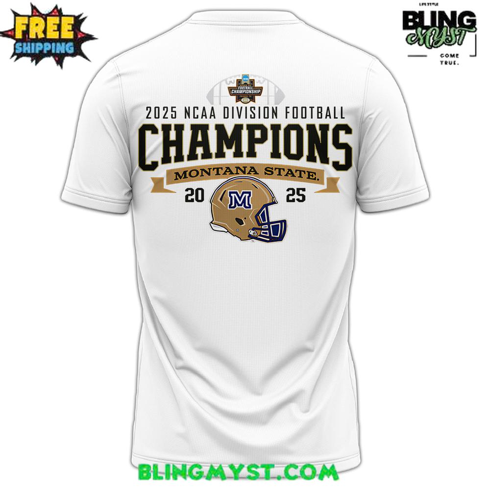 The Montana State Bobcats 2025 NCAA Division Champions Profestional T-Shirt captures the pride, celebration, and legacy of a championship season in a clean, timeless design made for true fans.