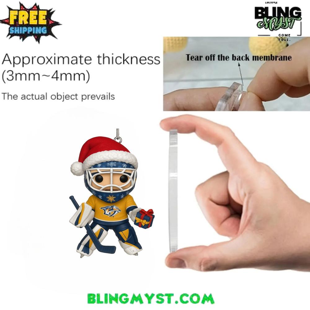 • Features adorable renditions of Predators players, a festive Gnash mascot in a Santa hat, and even classic gear like goalie masks and jerseys.