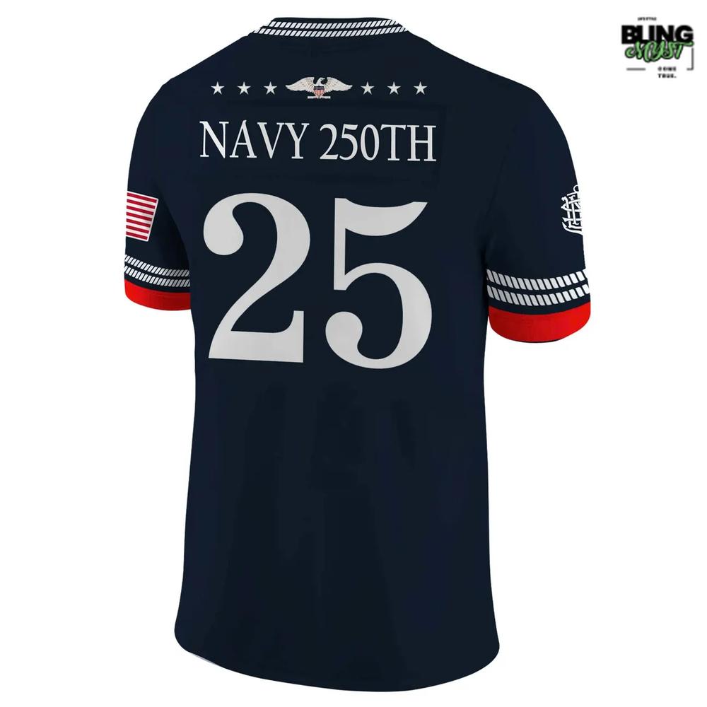 The Navy Midshipmen 250th Anniversary Limited Edition Football Jersey honors a milestone year with a powerful blend of tradition and modern athletic design.