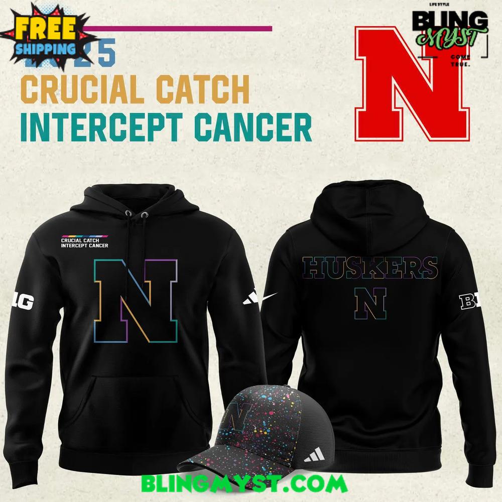 Nebraska Cornhuskers Crucial Catch Intercept Cancer 2025 Hoodie