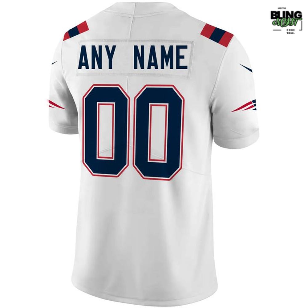 The New England Patriots Nike White Super Bowl LX Game Football Jersey as a study in clean power and championship minimalism. The all-white base instantly communicates prestige, focus, and a sense of occasion, setting it apart from regular-season jerseys. White in football styling is never accidental—it signals confidence under pressure. The familiar Patriots navy and red accents cut sharply through the neutral base, giving the jersey a disciplined, almost ceremonial presence that feels worthy of the Super Bowl stage.