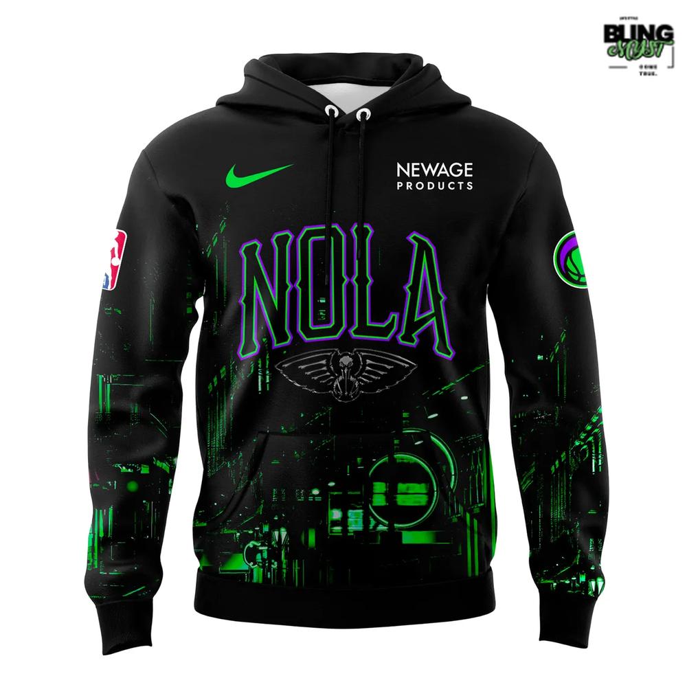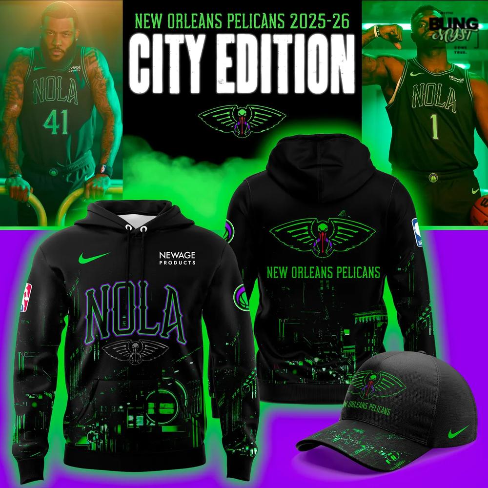 The New Orleans Pelicans 2025-26 City Edition Hoodie channels the electric spirit of NOLA after dark with bold colors, glowing details, and a gritty streetwear edge.
