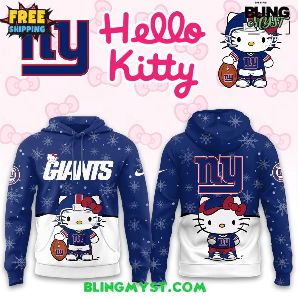 A rich Giants-blue hoodie paired with crisp white accents, featuring a playful character illustration dressed in team colors for a fun seasonal twist.