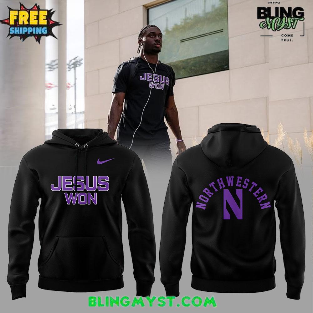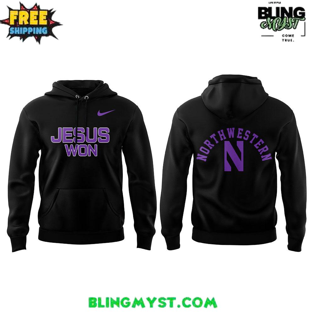 • The Northwestern Wildcats Jesus Won Special Hoodie blends athletic pride with a bold statement of faith, celebrating victory on and off the field.