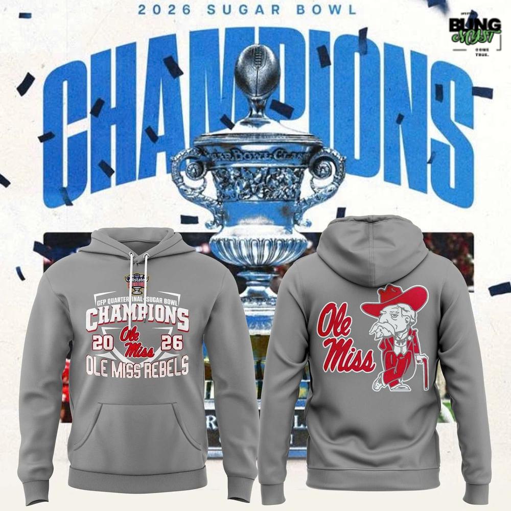 The Ole Miss Rebels 2026 Sugar Bowl Champions Hoodie celebrates a defining postseason victory with bold graphics and unmistakable Rebel pride. Designed to honor a championship run, this hoodie blends statement-making visuals with everyday comfort fans can rely on.
