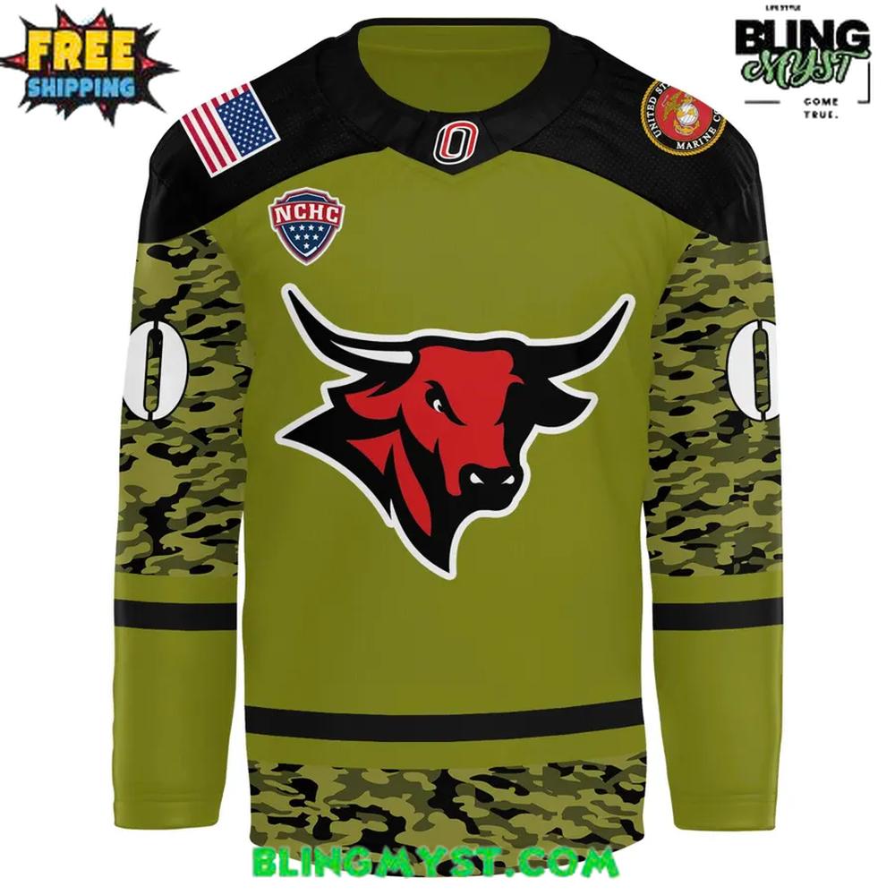 Honor. Strength. Pride. – Omaha Mavericks 2025 Military Appreciation Night Camo Hockey Jersey