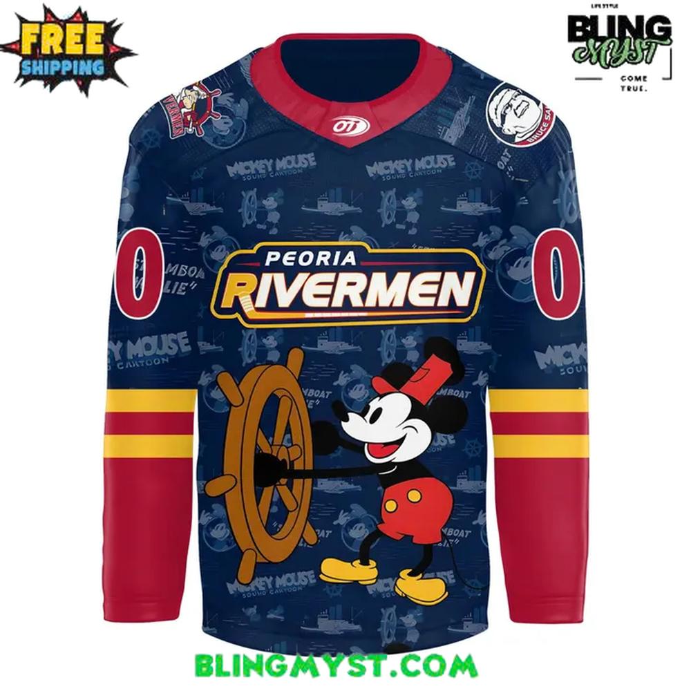 The Peoria Rivermen Disney Night 2026 Hockey Jersey captures the excitement of a special themed game with bold visuals, rich storytelling, and classic hockey style fans can truly wear.