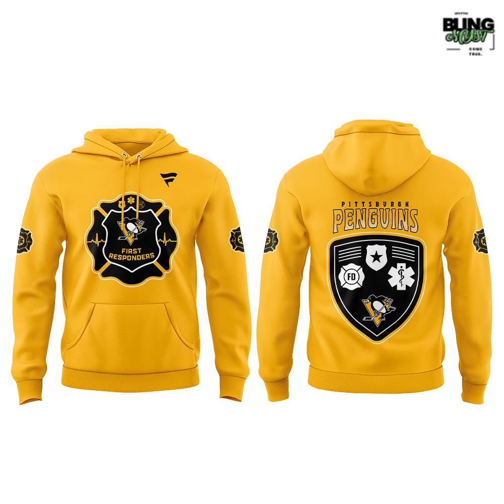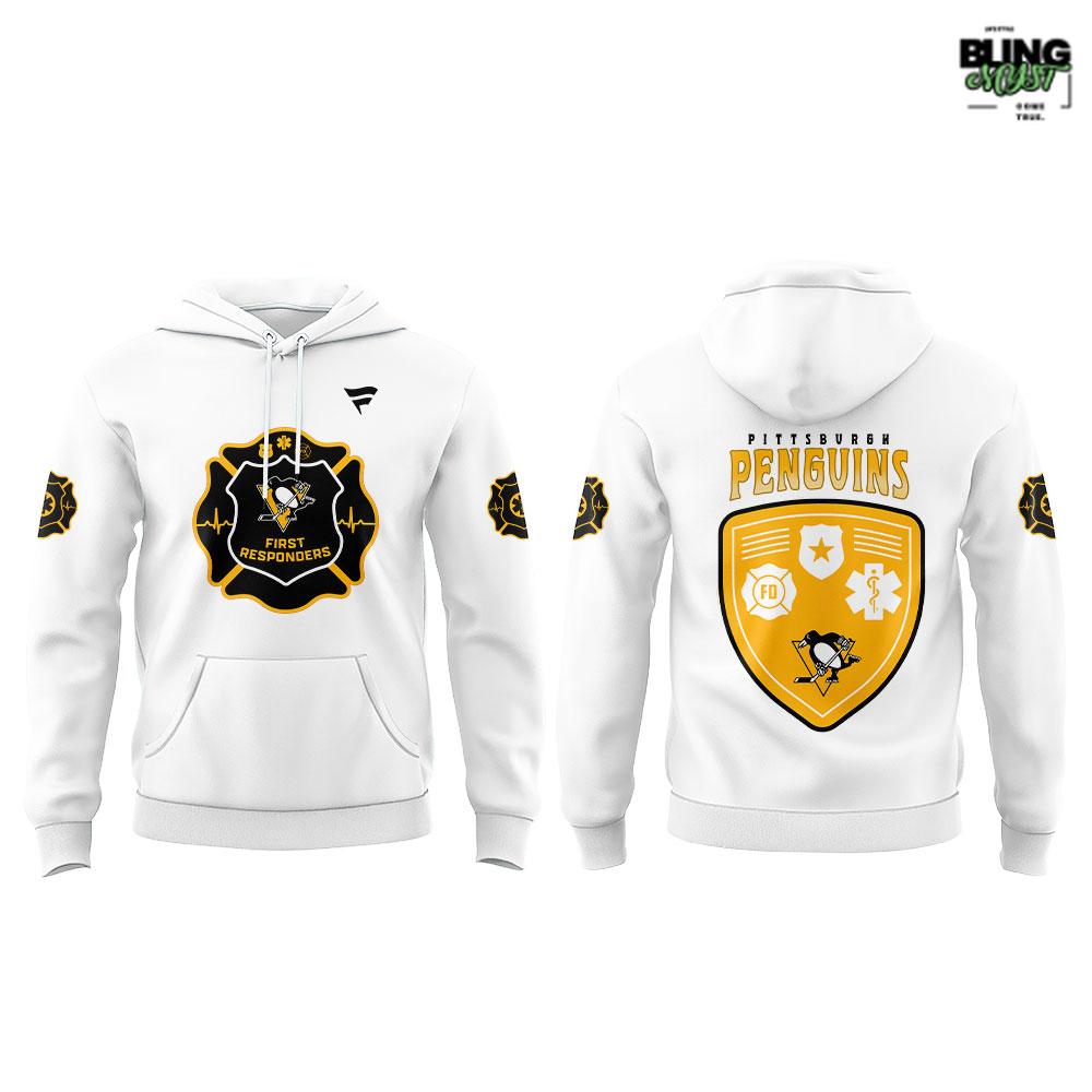 Critically, the jersey succeeds because it feels intentional. It understands that tribute apparel should communicate respect through composition, restraint, and clear symbolism—not through excessive slogans. As a collectible, it carries the weight of a one-night story; as a wearable, it remains clean enough to layer under a jacket and still look sharp. Overall, it’s meaningful sportswear—a jersey that lets Penguins pride and first-responder gratitude share the same space with dignity.